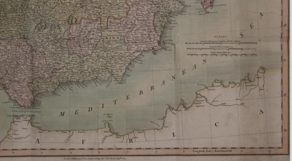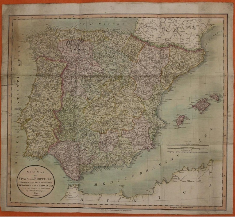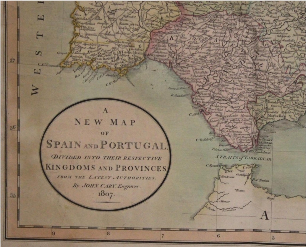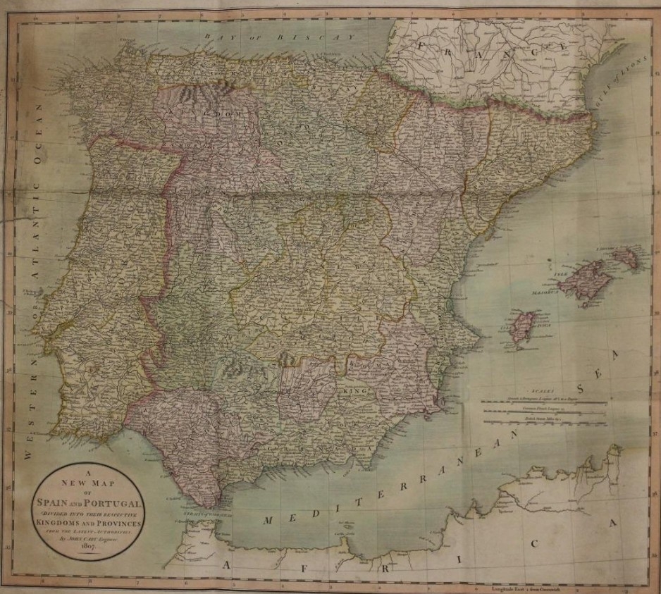 Título original: A New Map of Spain and Portugal Divided into their respective Kingdoms and Provvinces from the Latest Authorities. By John Cary Engineer 1807.