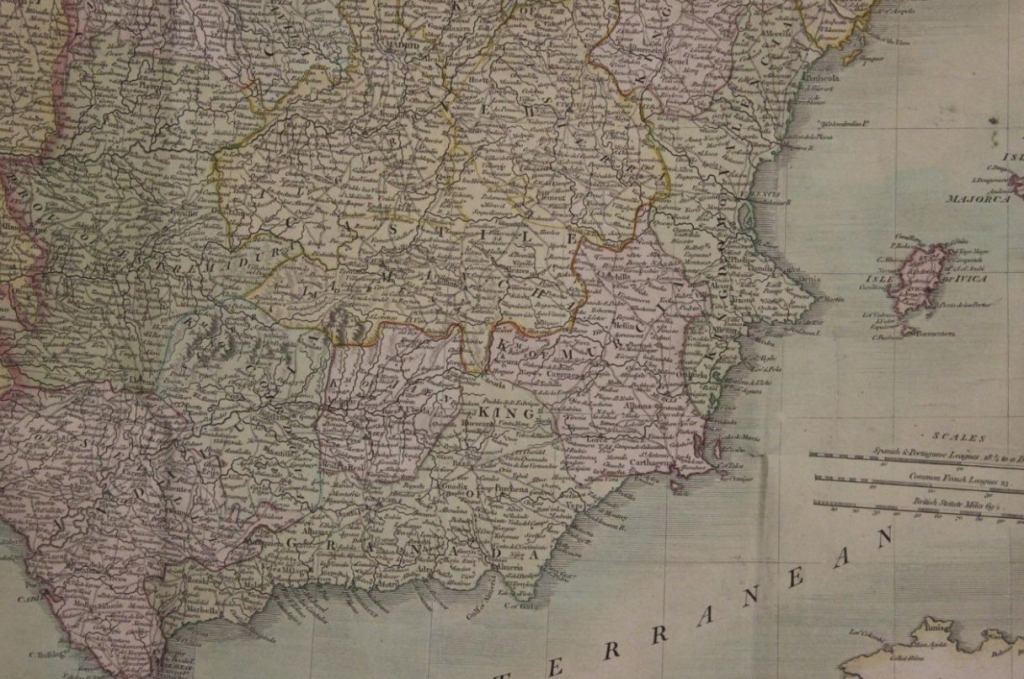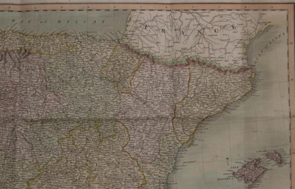 Gran mapa a color de España y Portugal, 1807. John Cary