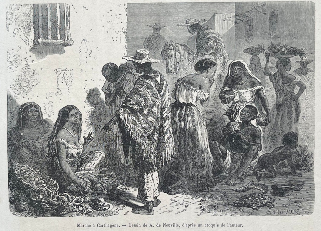 Mercado de Cartagena de Indias (Colombia), 1872. De Neuville/Gauchard