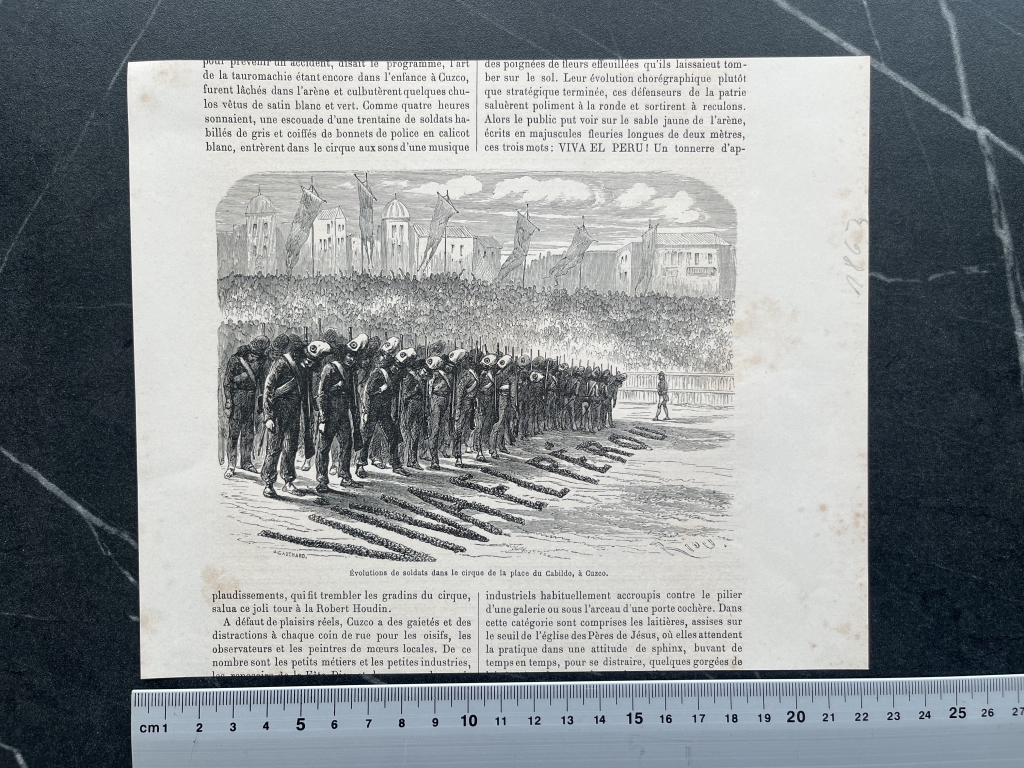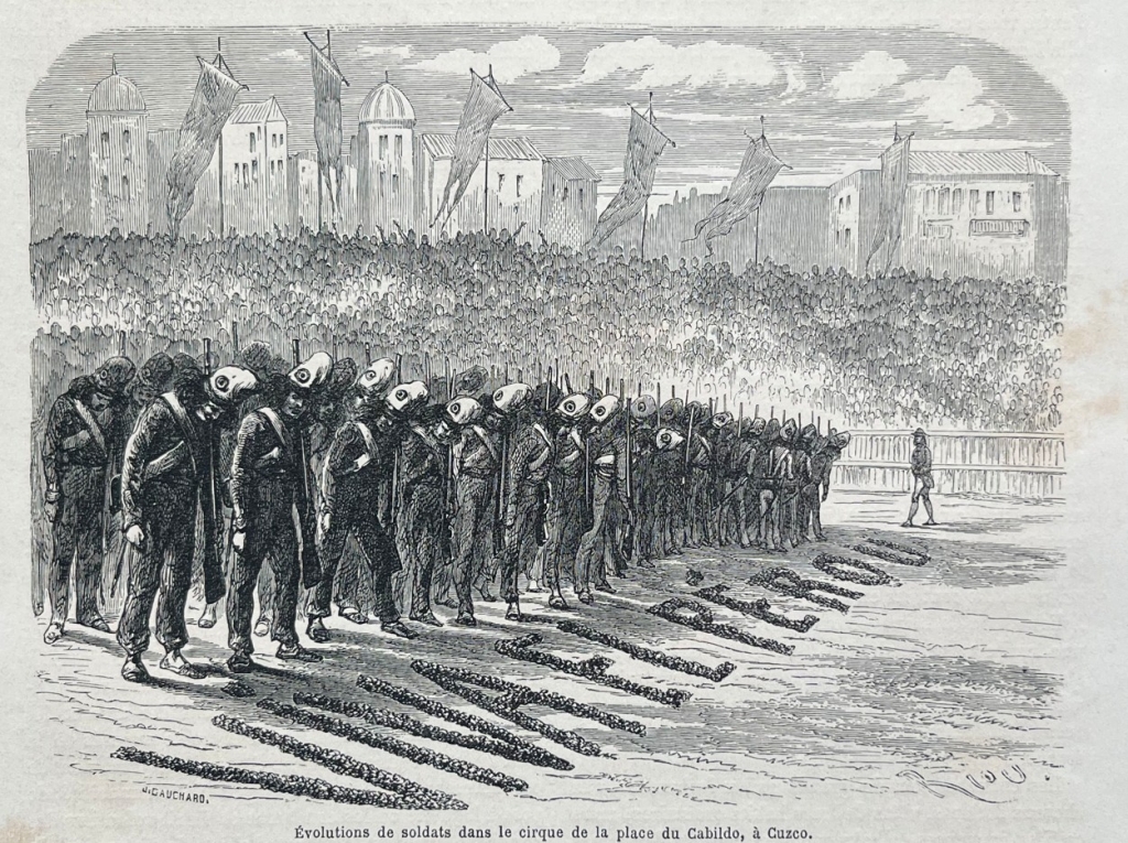 Soldados en la plaza del Cabildo, en Cuzco (Perú), 1863. Gaurchard/Riou