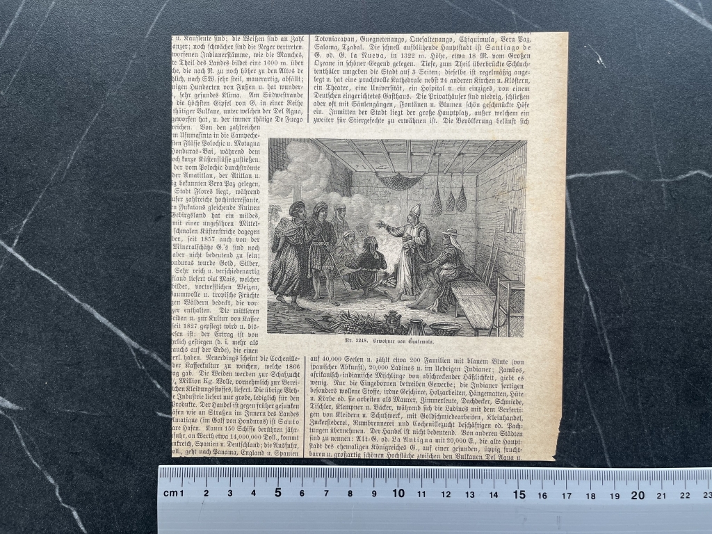 Se nos muwstra una curiosa escena desaroollada en erl interior de una vivienda en Guatemala (América Central), en la que vemos a varios personajes participando y asistiendo a la misma. En el reverso, posee un retrato de un personaje histórico.