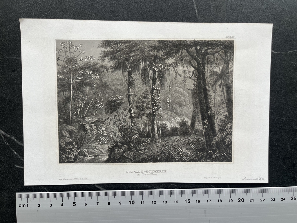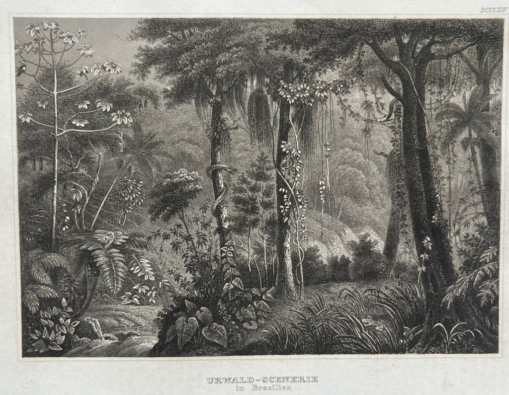 Escena de la selva de Brasil (América del sur), hacia 1850. Biblio. Inst. Hild.