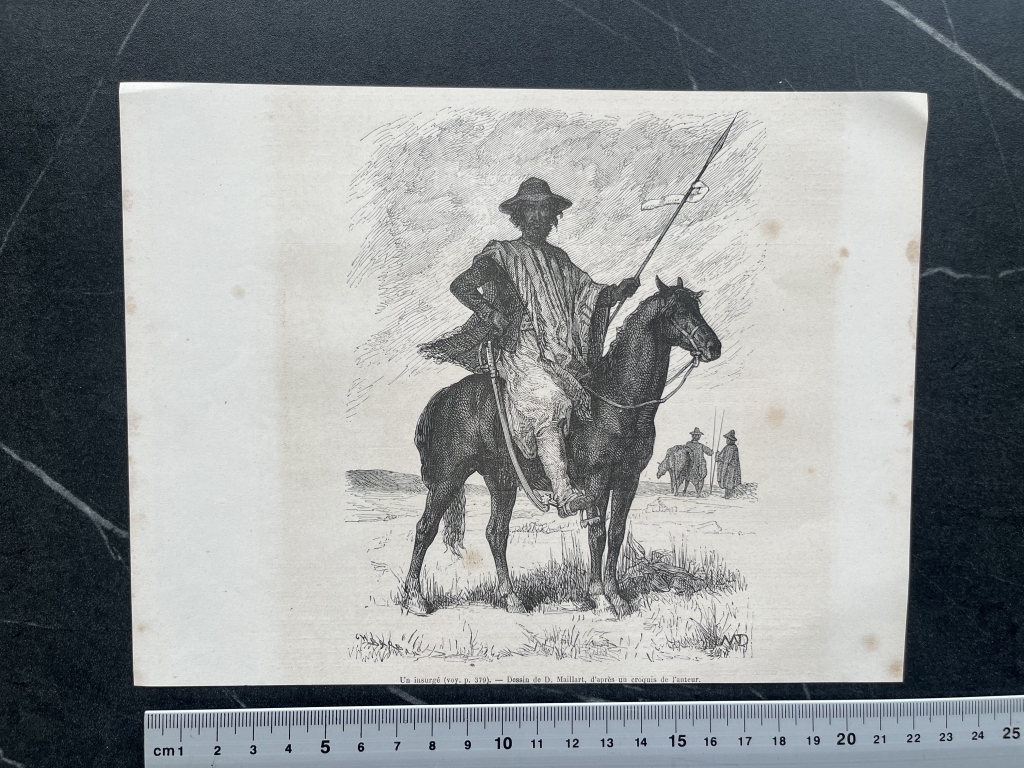 Xilografías o grabados de placa de madera, extraídas de una publicación francesa, editada en 1870. Los autores de los dibujos fueron Therond y Maillart y de uno del os grabados Barban.