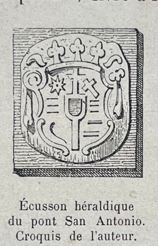 Se nos mustra una vista panorámica del artístico puente de san Antonio en la ruta que va hacia Bogotá, la capital de Colombia (América del sur). En su reverso, podemos ver un detalle del escudo heráldico que posee.