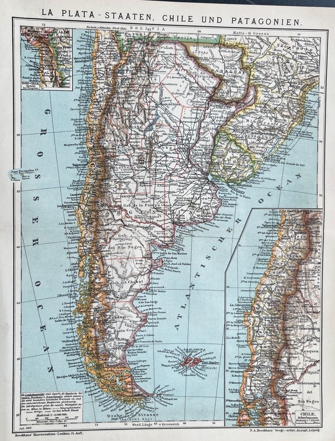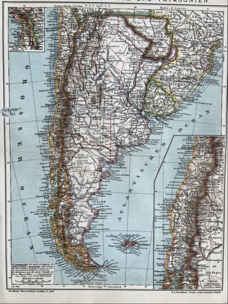 Chile, Argentina, Paraguay y Uruguay, hacia 1890. Brockhaus