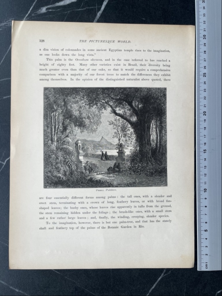Litografísa o grabados de placa de madera extraído de la conocida publicación inglesda The pittoresque wurd, editada en Londres hacia 1880. Su dibujante es Lacelot y el grabador Laplante.