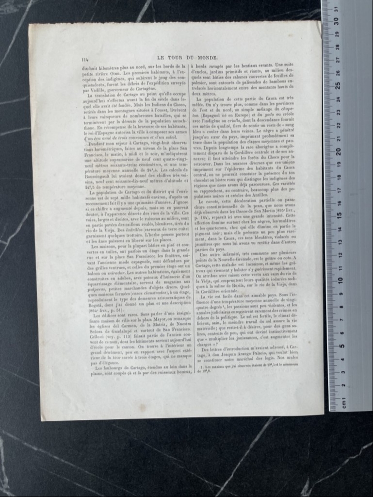 Xilografía o grabado de placa de madera, extraído de la publicación francesa Le tour du monde, editada en Paris en 1876. Los autores son Braclay y André.
