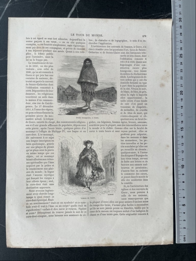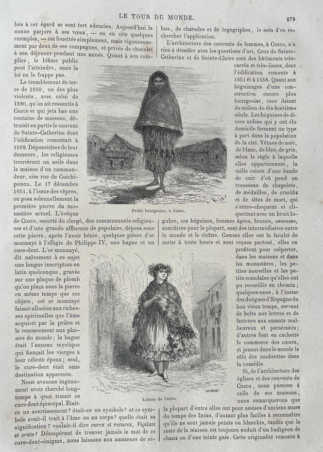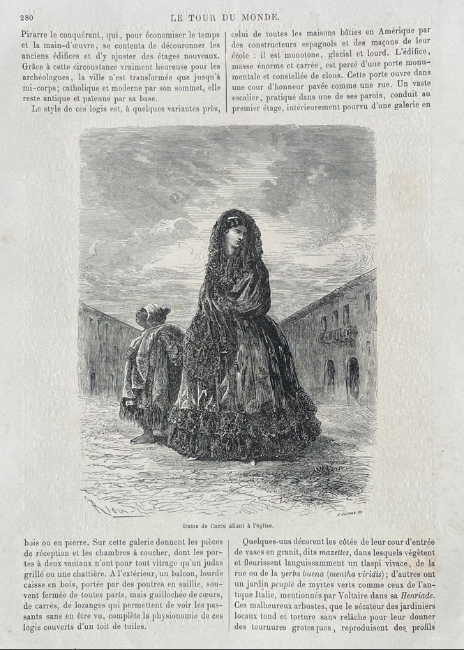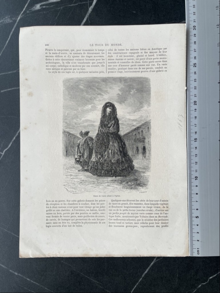 Xilografía o grabados de placa de madera, extraída de la publicación francesa Le tour du monde, editada en Paris en 1863. Los dibujos son de Riou y los grabados de A. Gusman.