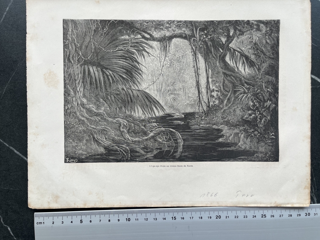 Xilografía o grabados de placa de madera, extraídas de una publicación francesa titulada Le tour du monde, edditada en Paris en 1866.