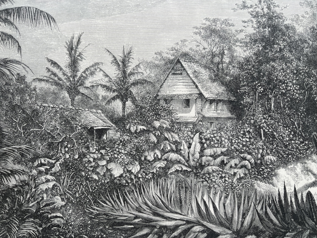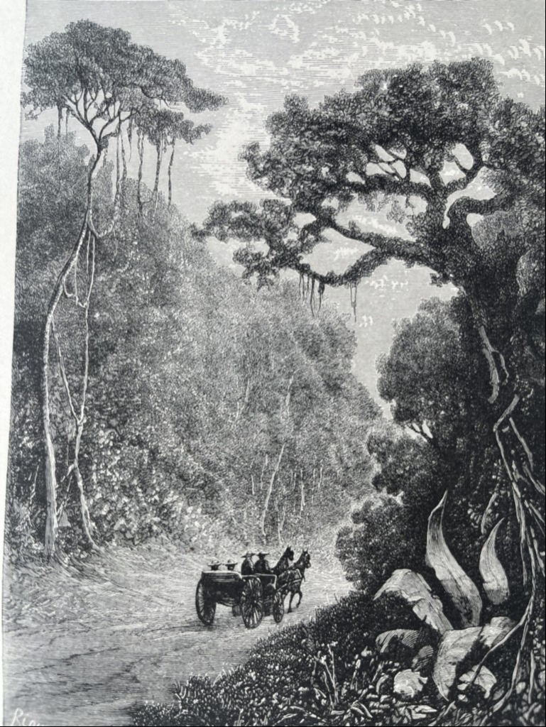 Misión jesuítica y carretera en Cayena (América del sur), hacia 1880. Riou/Laly