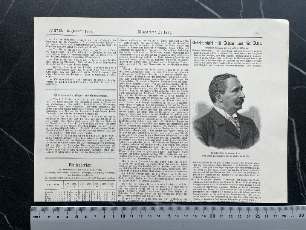 Xilografía o grabado de placa de madera, extraído de una publicación alemana editada en 1896. El autor es Goering.