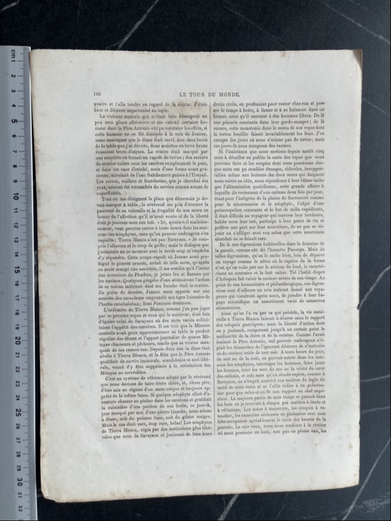 Xilografía o grabado de placa de madera extraído de la publicación francesa Le tour du monde, editada en Paris en 1862. El autor es Riou.