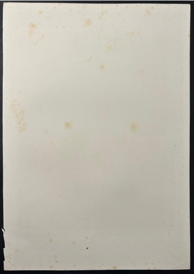 Estado: Impresión muy fuerte y oscura sobre papel resistente. Hoja sin color. Márgenes amplios. Pequeñas manchas de color marrón. Las condiciones son las que se pueden ver en las imágenes.