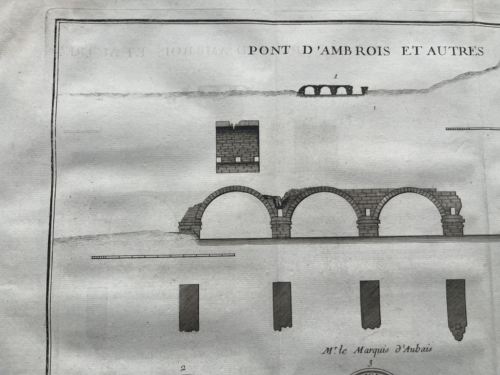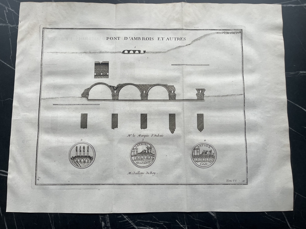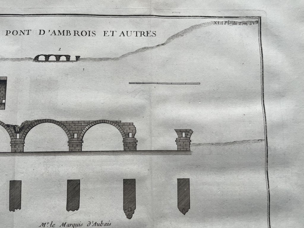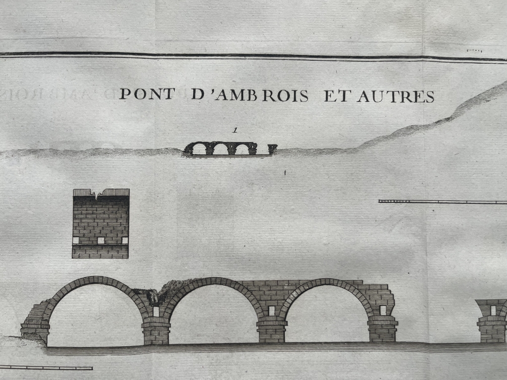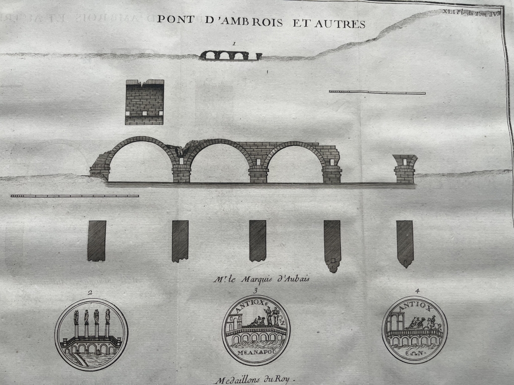 GRAN VISTA DEL PUENTE ROMANO DE AMBROIX (FRANCIA) Y OTROS, 1757. MONTFAUCON