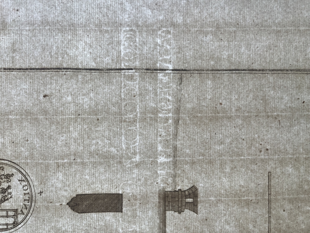 Su estado con conservación es bueno, con fuerte y oscura impresión, en papel verjurado con una bella marca de agua (correspondiente a una serie de letras), dos pliegues originales y amplios márgenes blancos. Ver fotografías.