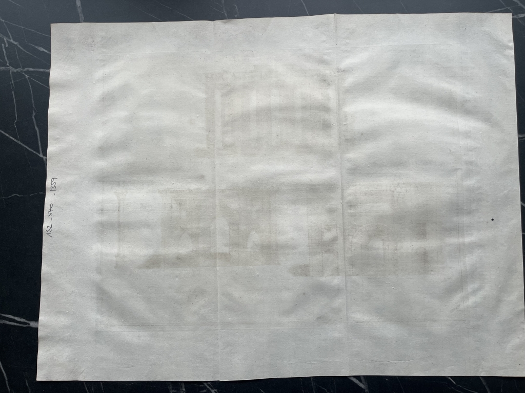 Su estado con conservación es bueno, con fuerte y oscura impresión, en papel verjurado con marcas de agua (serie de letras y figurativa), con dos pliegue originales y amplios márgenes blancos. Ver fotografías.