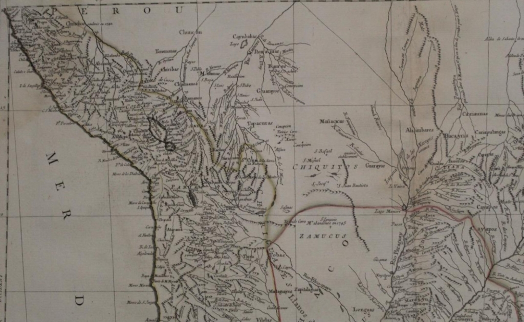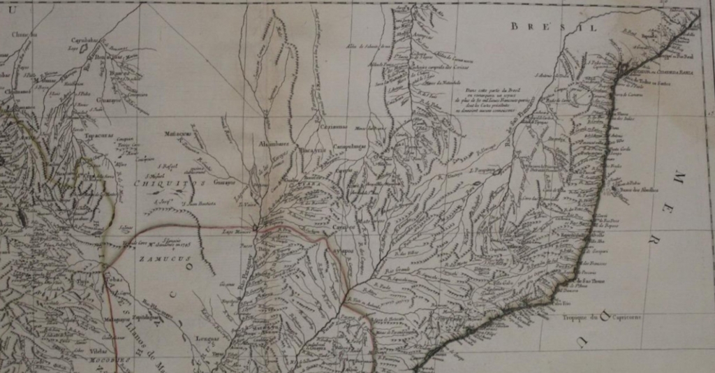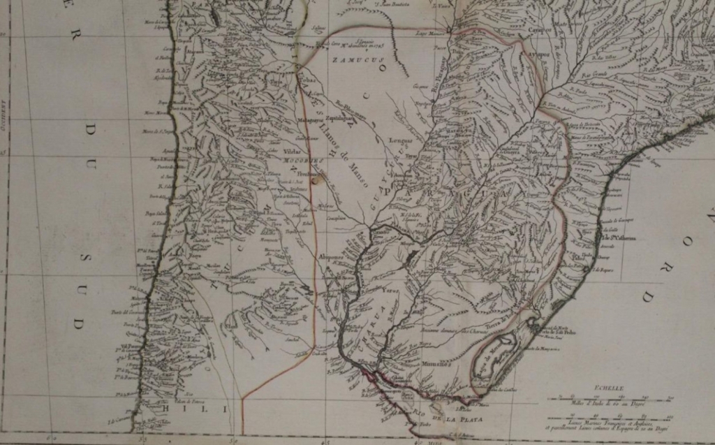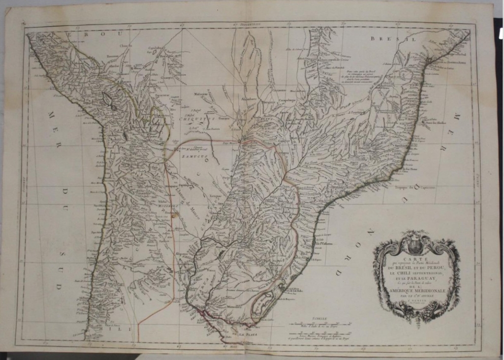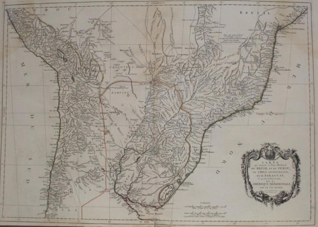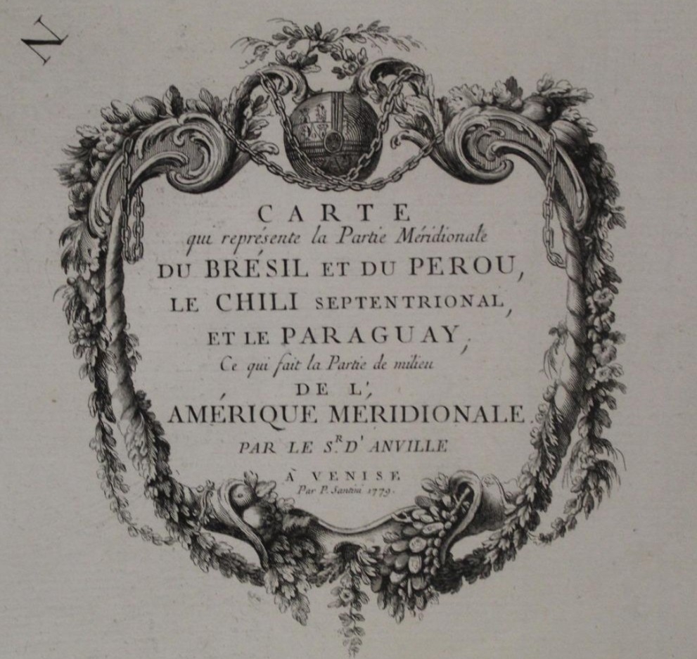 - Carte qui représente la Partie Méridionale du Bresil et du Perou, le Chili Septentrional, et le Paraguay; Ce qui fait la partie de Milieu de l'Amérique Meridionale, par le Sr. d'Anville. A Venise par P. Santini 1779. Chez Remondini.