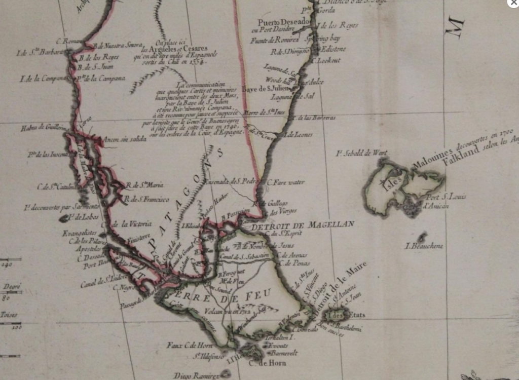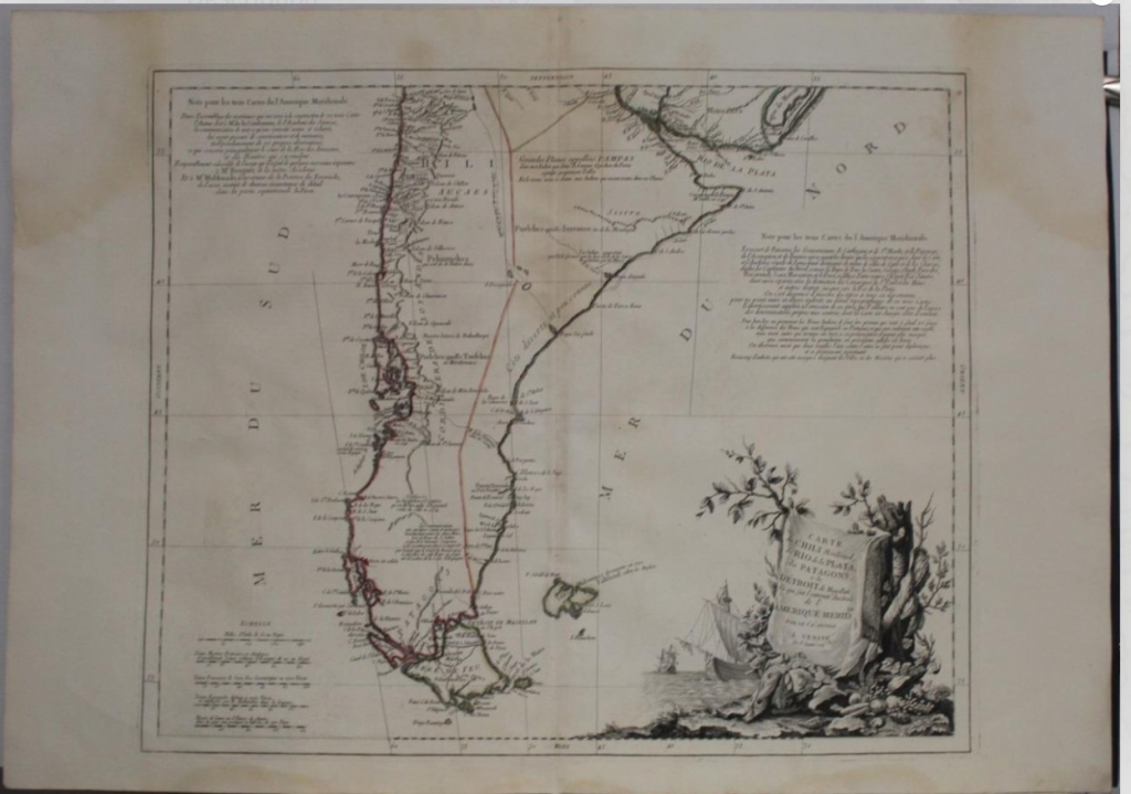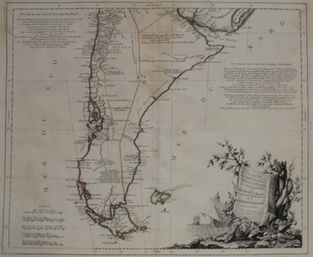 - Carte du Chili Méridional; du Río de la Plata, des Patagons; et du Détroit de Magellan : Ce qui fait l´extremité Australe de l´Amerique Merid. par le sr D´Anville. Venecia : P. Santini,