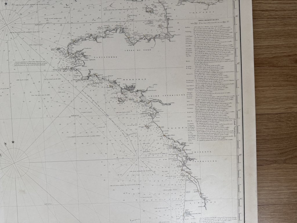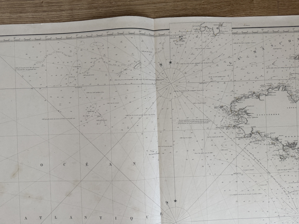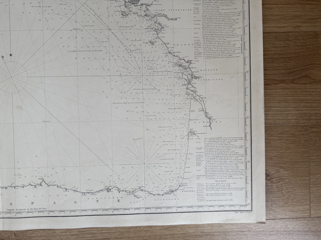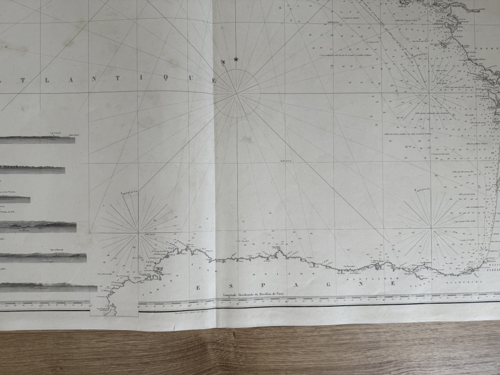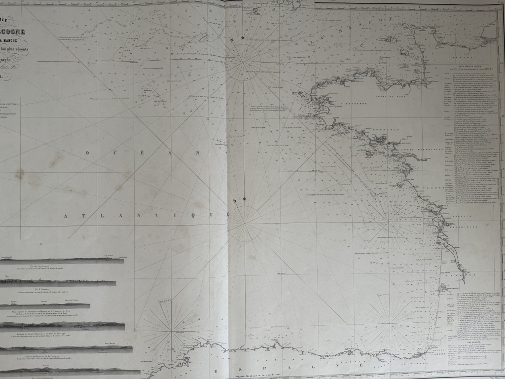 Título original: Carte générale du Golfe de Gascogne et des Atterrages de la Manche dressée d'après les Documents les plus récents Par Robiquet Hydrographe Rue Pavée André des Arts N° 2 Paris 1852.