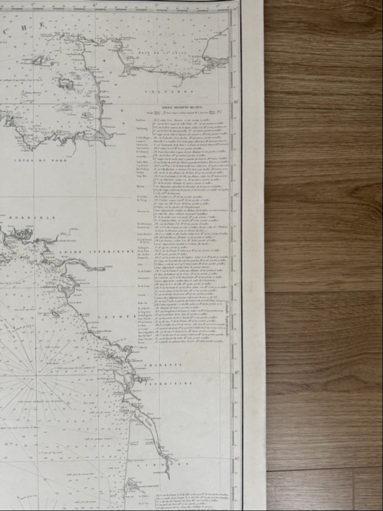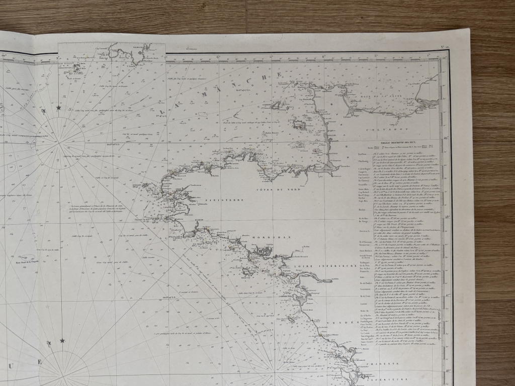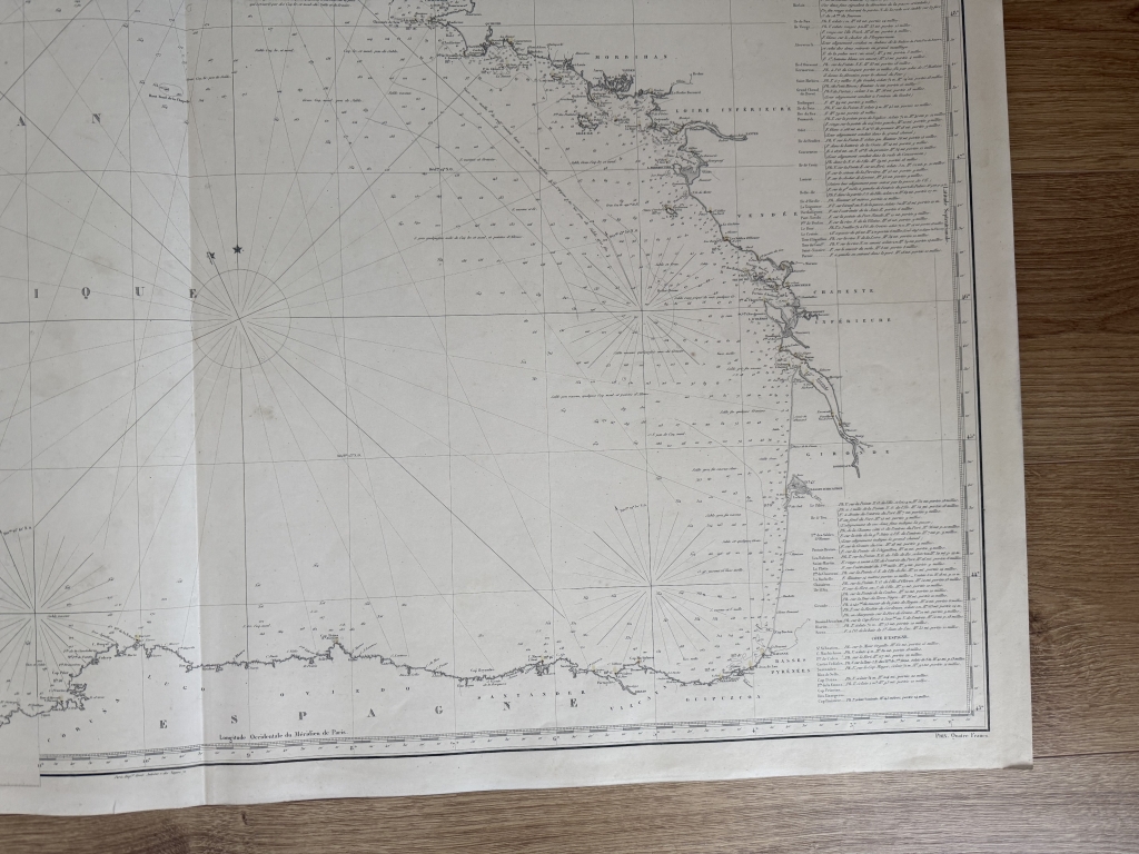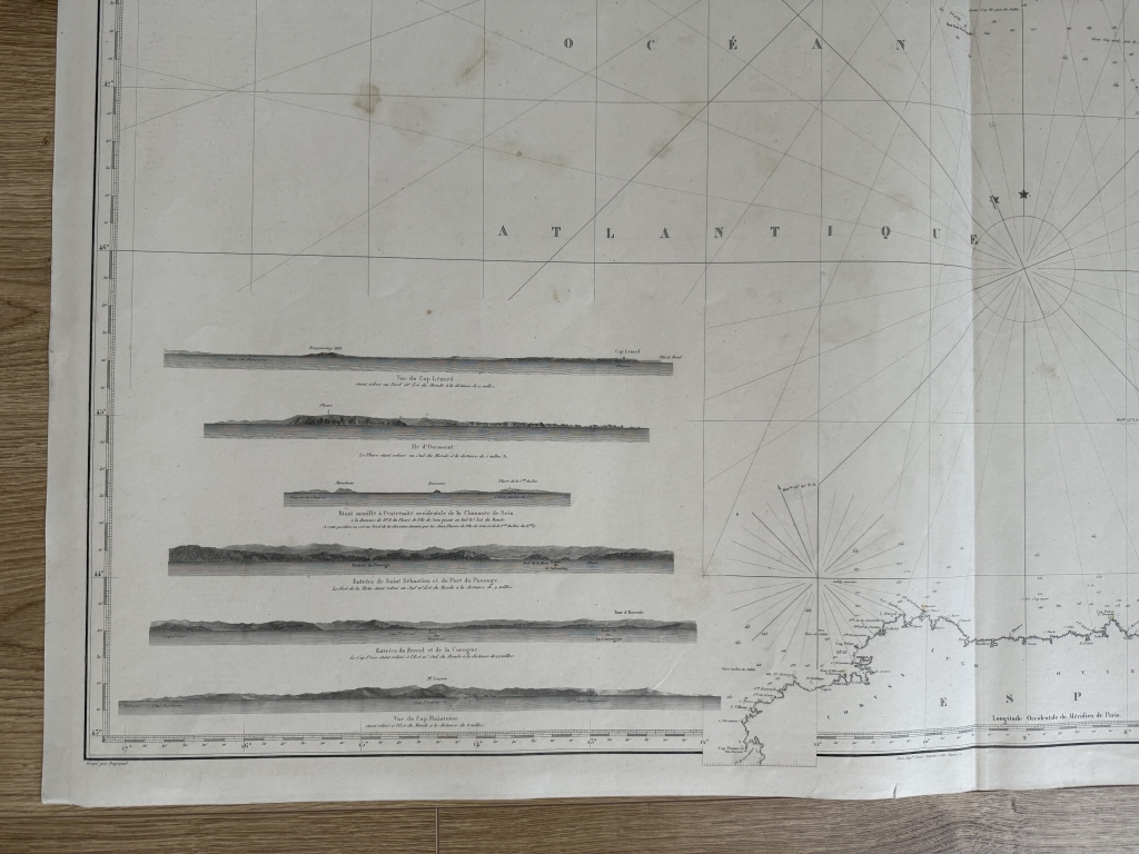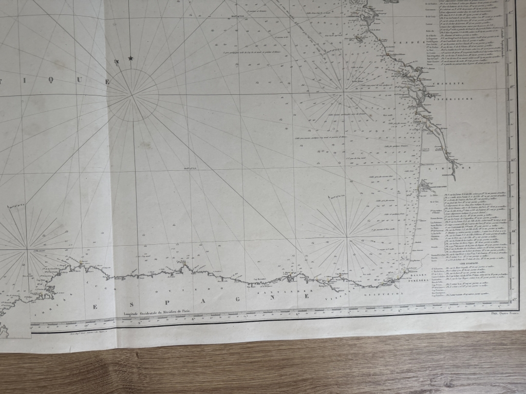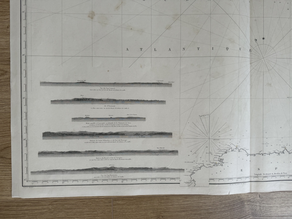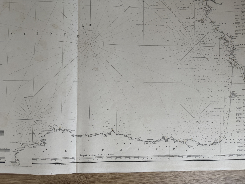 GRAN CARTA NÁUTICA DEL NORTE DE ESPAÑA Y OESTE DE FRANCIA, 1852. JEAN-BAPTISTE ROBIQUET