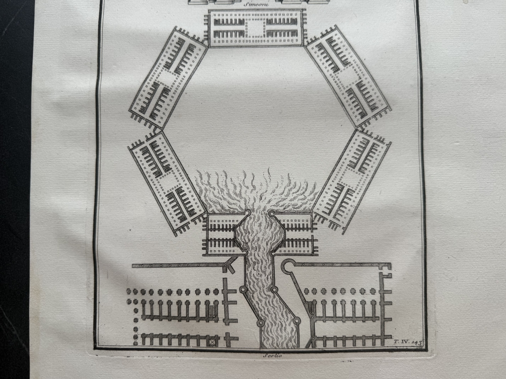 Grabado de placa de cobre de Bernard de Montfaucon (1655-1741), extraído de su gran obra titulada “ L’Antiquite Expliquée et Représentée en Figures.- Tomo IV. Editada en París, por Delaulne y Foucault, en 1719. Primera edición.