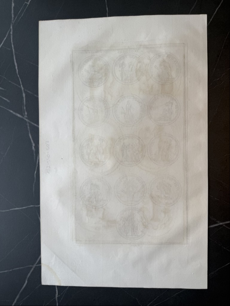 Grabado de placa de cobre de Bernard de Montfaucon (1655-1741), extraído de su gran obra titulada “ L’Antiquite Expliquée et Représentée en Figures.- Tomo IV. Primera parte. Editada en París, por Delaulne y Foucault, en 1719. Primera edición.