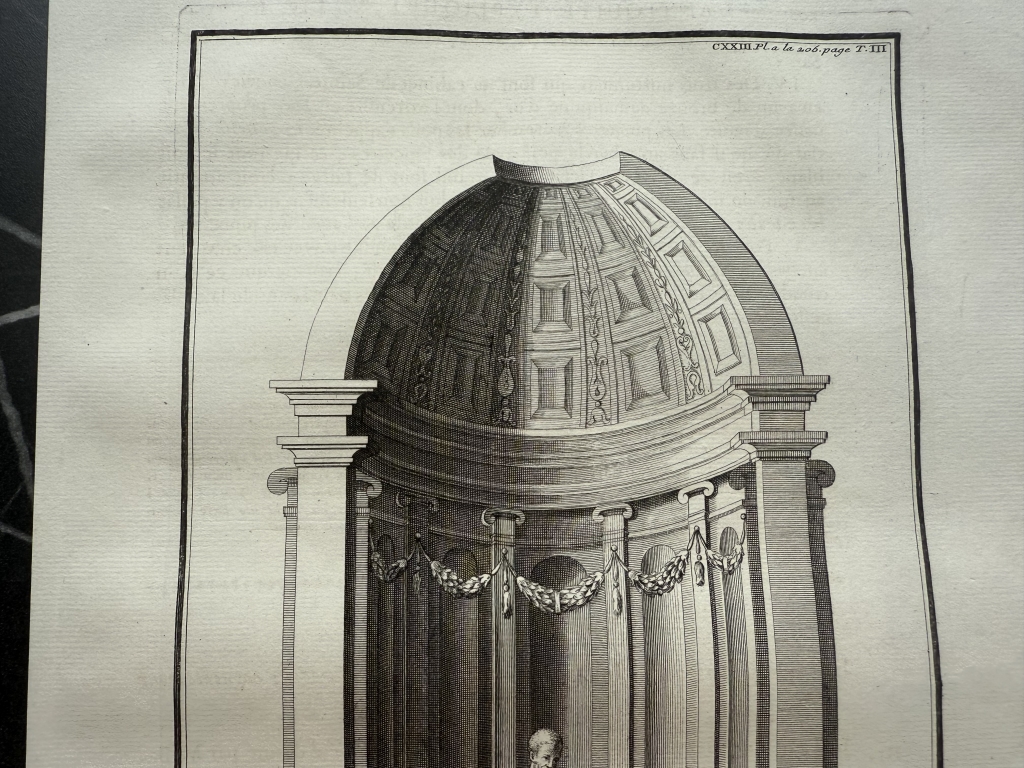 Grabado de placa de cobre de Bernard de Montfaucon (1655-1741), extraído de su gran obra titulada “"L'Antiquité Expliquée et Représentée. Tomo III. Segunda parte. Editada en Paris, por Delaulne & Foucault, en 1719. Primera edición.