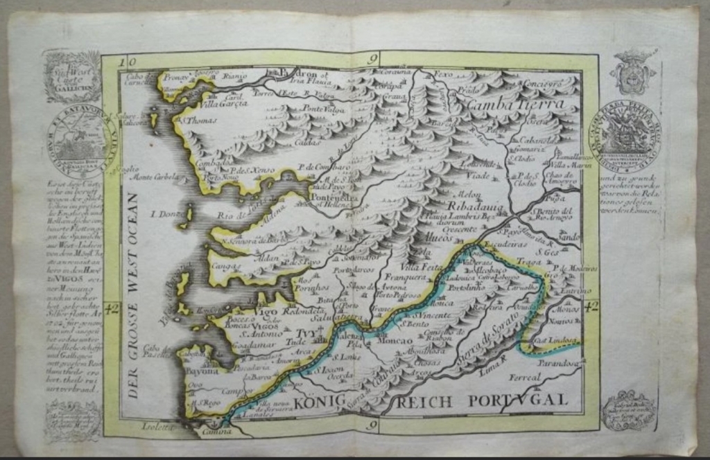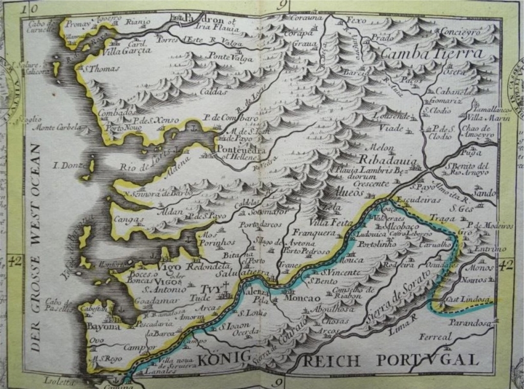 Título original y traducido: "Die Süd-West Cüste von Gallicien. - Königreich Portugal" / "La costa suroeste de Galicia. - Reino de Portugal"