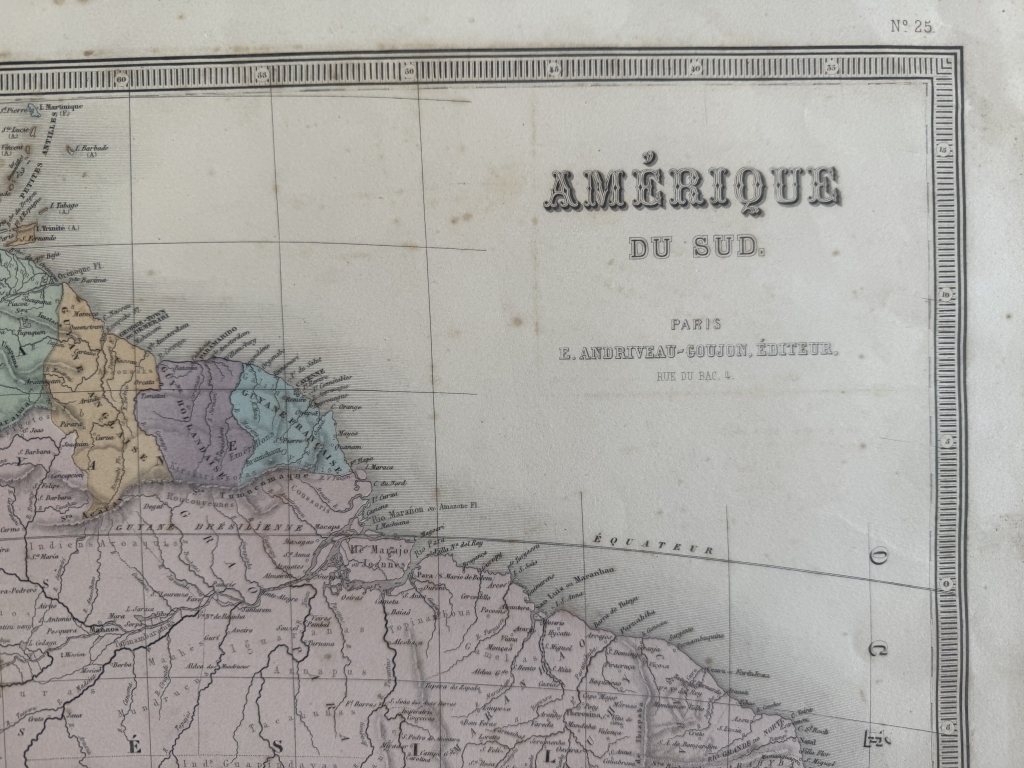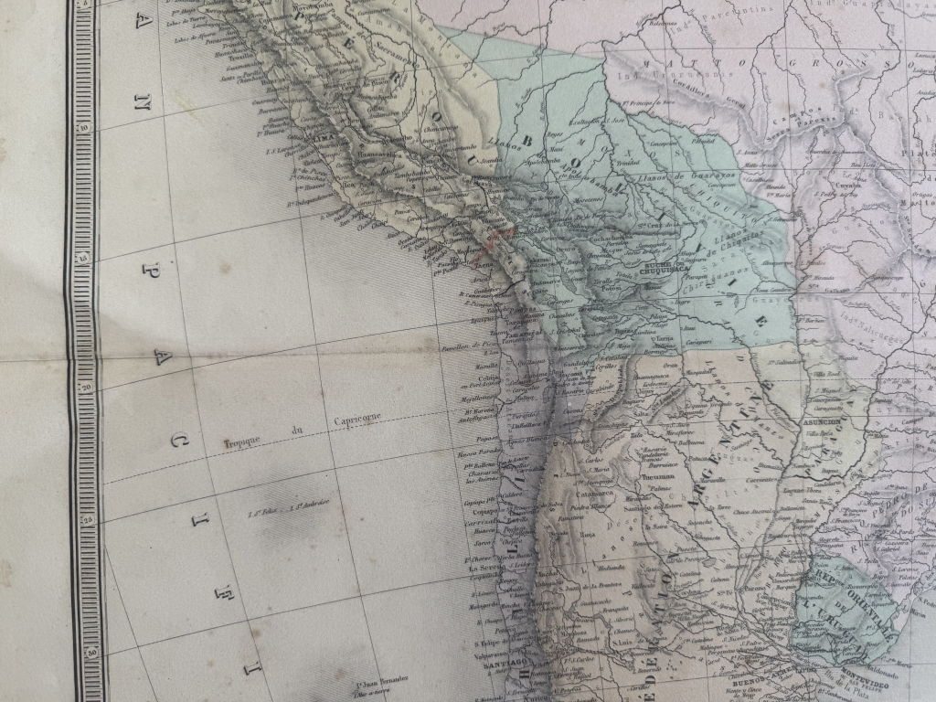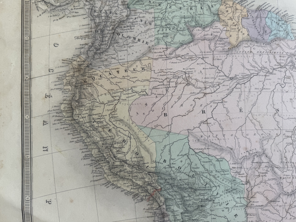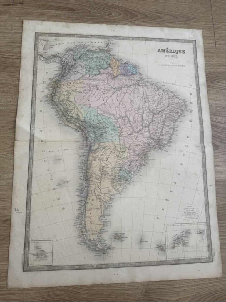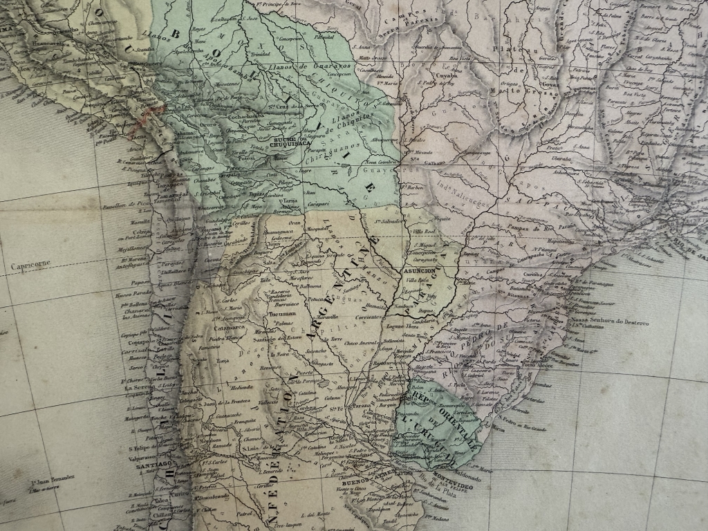 Gran mapa a color de América del sur, hacia 1862. Andriveau-Goujon