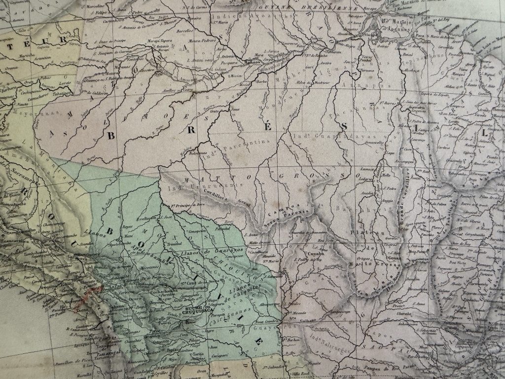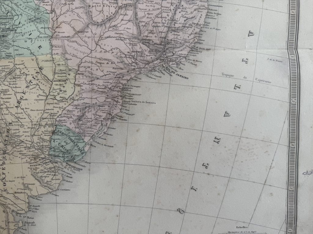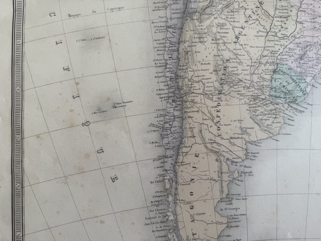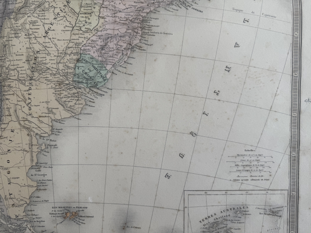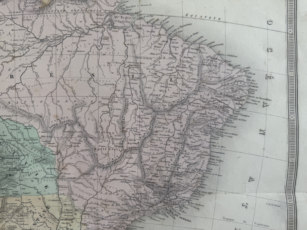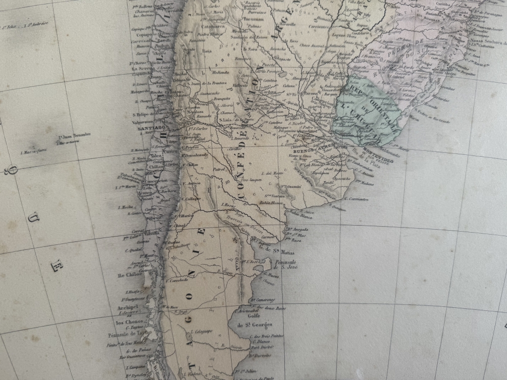 Gran mapa a color de América del sur, hacia 1862. Andriveau-Goujon
