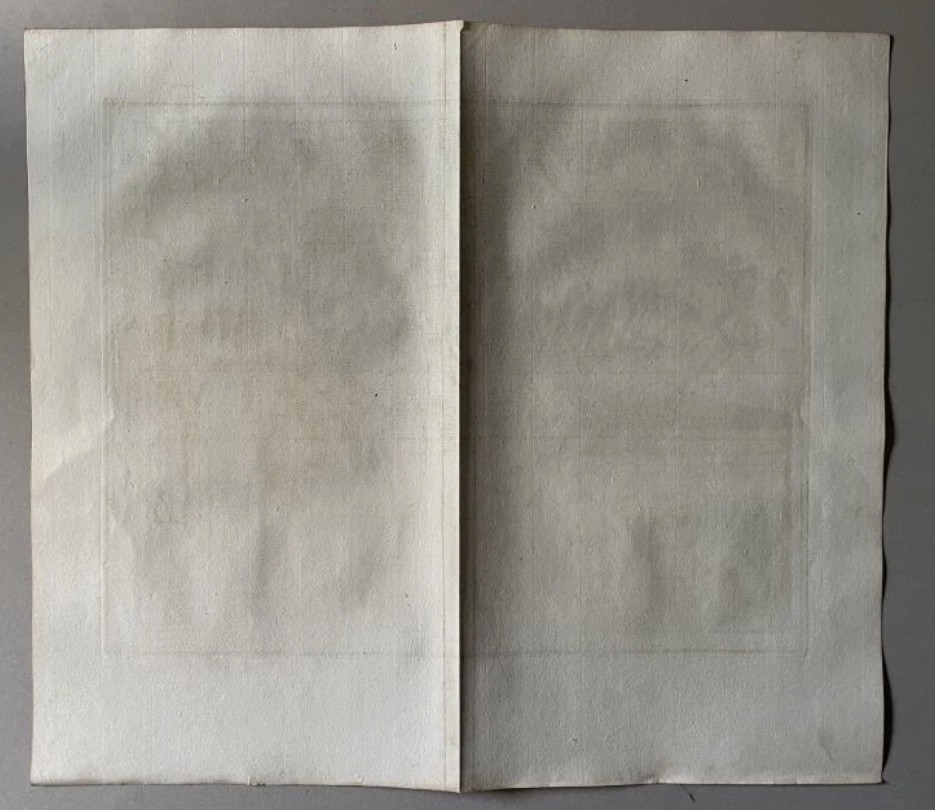 Su estado de conservación es bueno, con fuerte y oscura impresión, en buen pale verjurado, con pliegue central original y amplios márgenes. Ver fotografías.