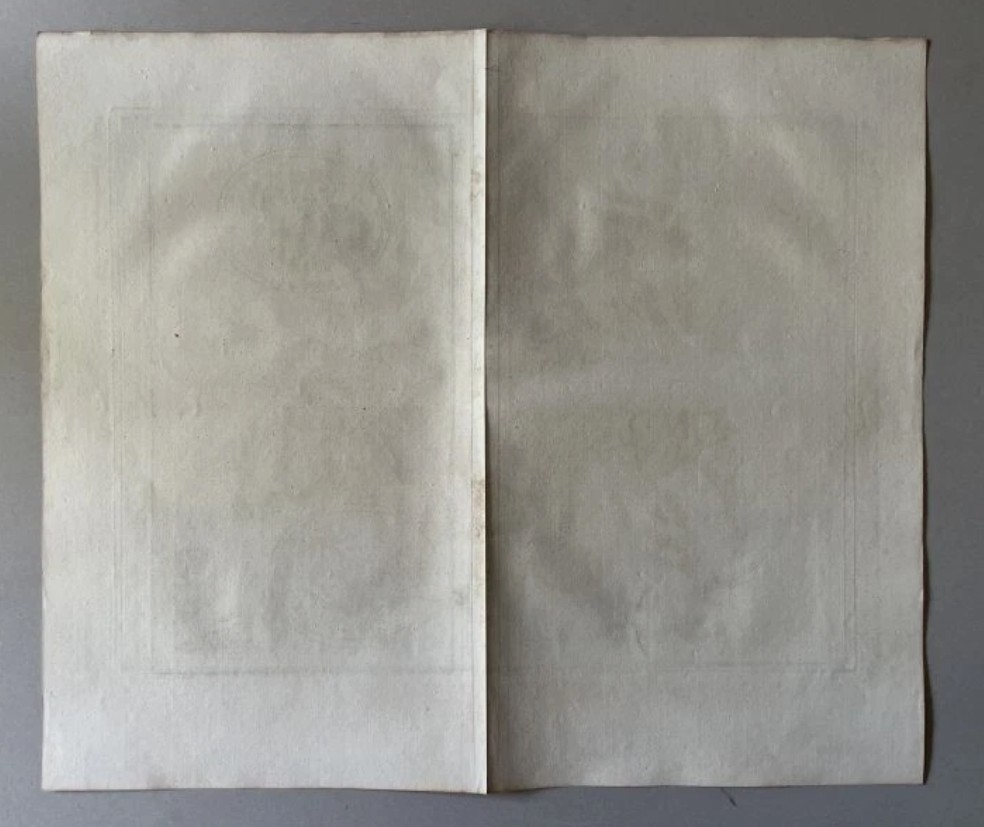Su estado de conservación es bueno, con fuerte y oscura impresión, en buen papel verjurado, con pliegue central original y amplios márgenes. Ver fotografías.