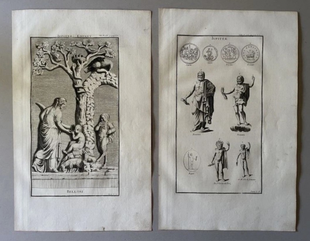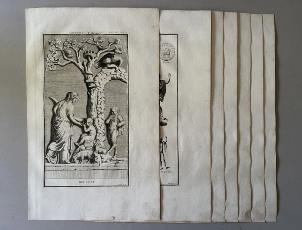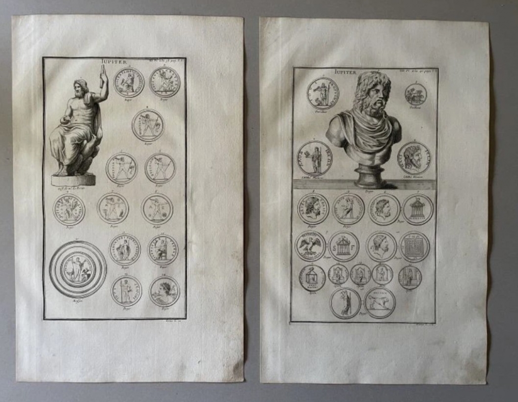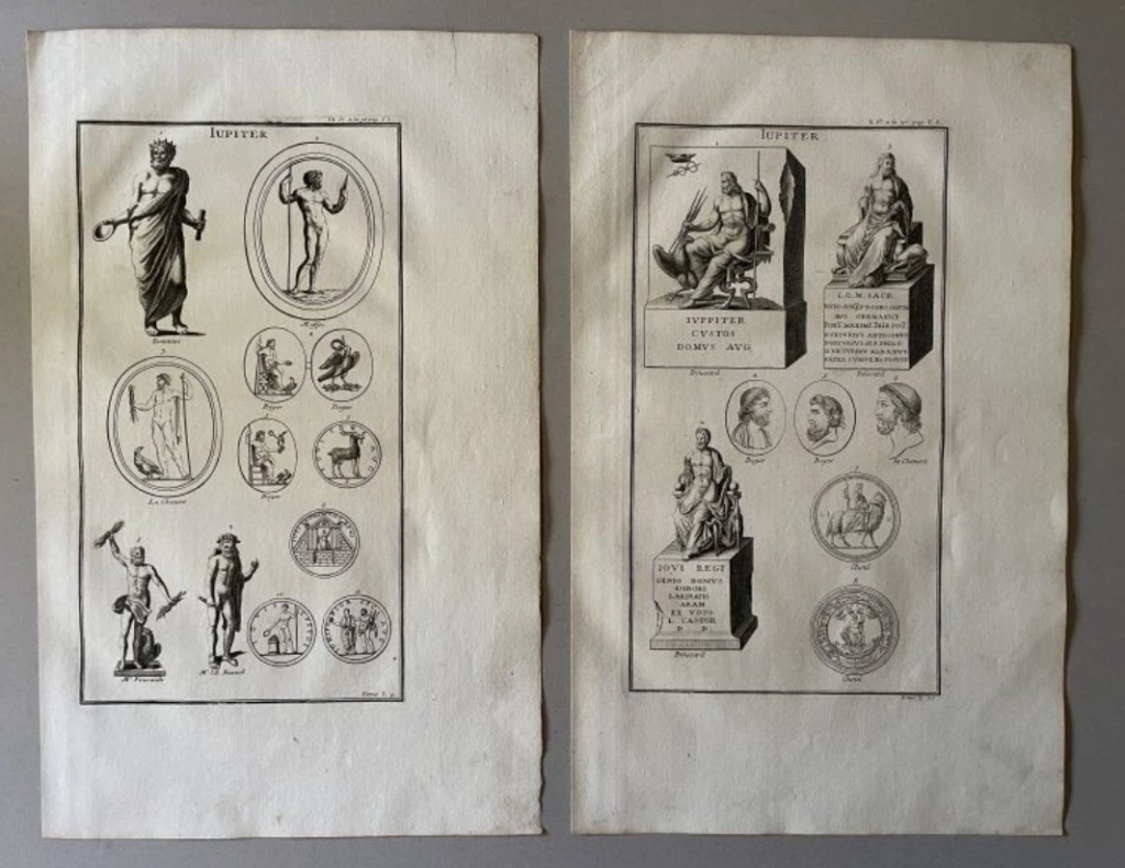 Lote de 7 grabados del dios Júpiter romano (y II), 1722. Bernard de Montfaucon