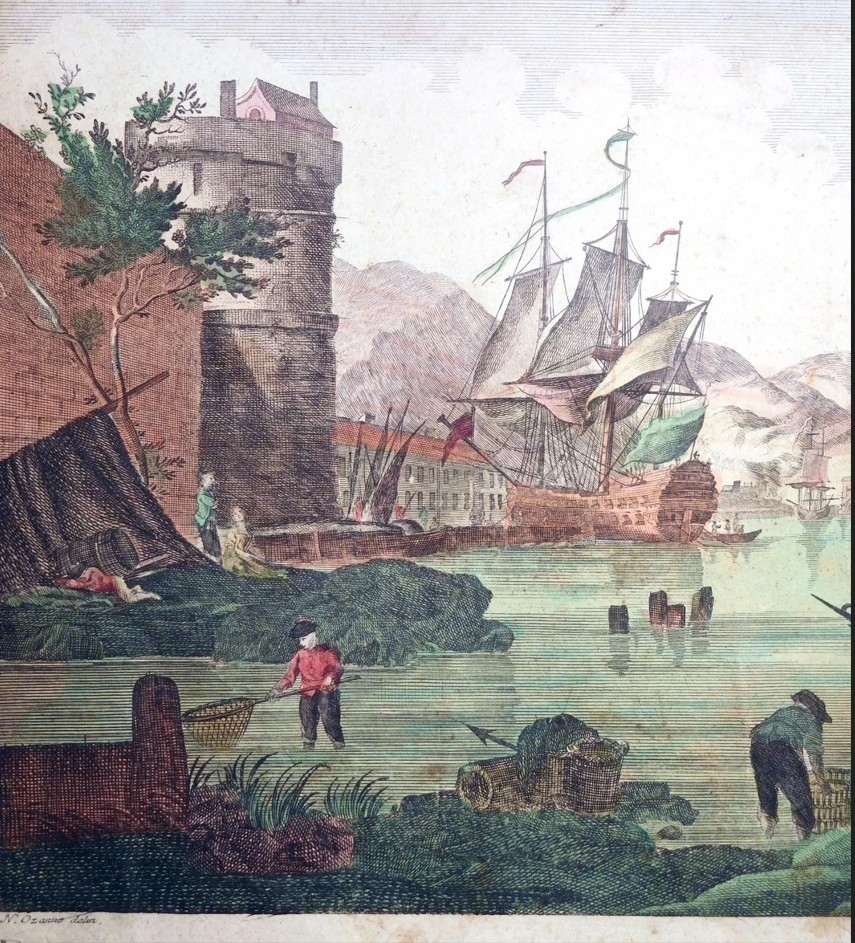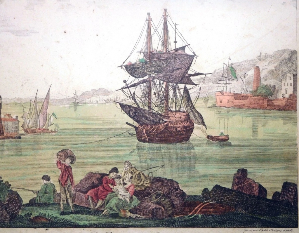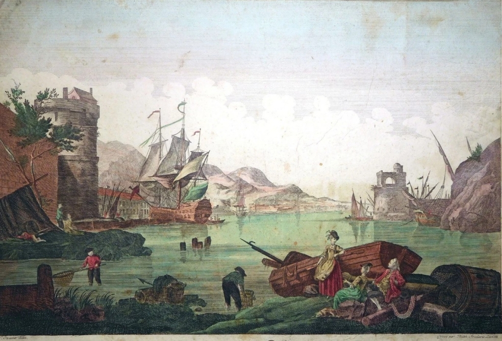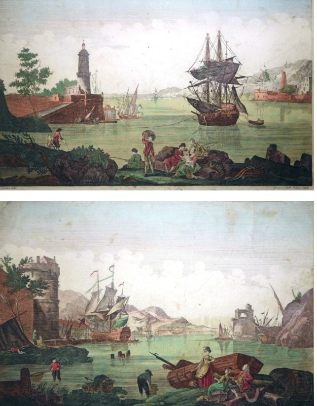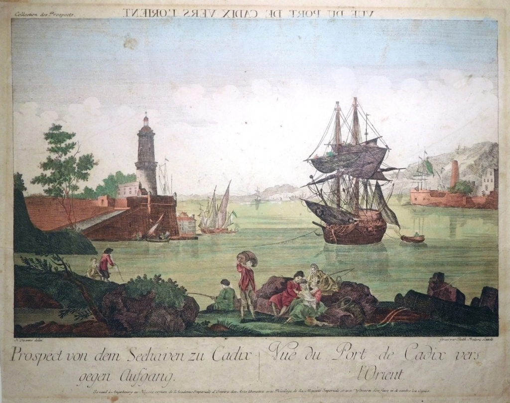 Dos vistas del puerto de Cádiz (Andalucía, España), hacia 1780. N. Ozanne / B.F. Leizel