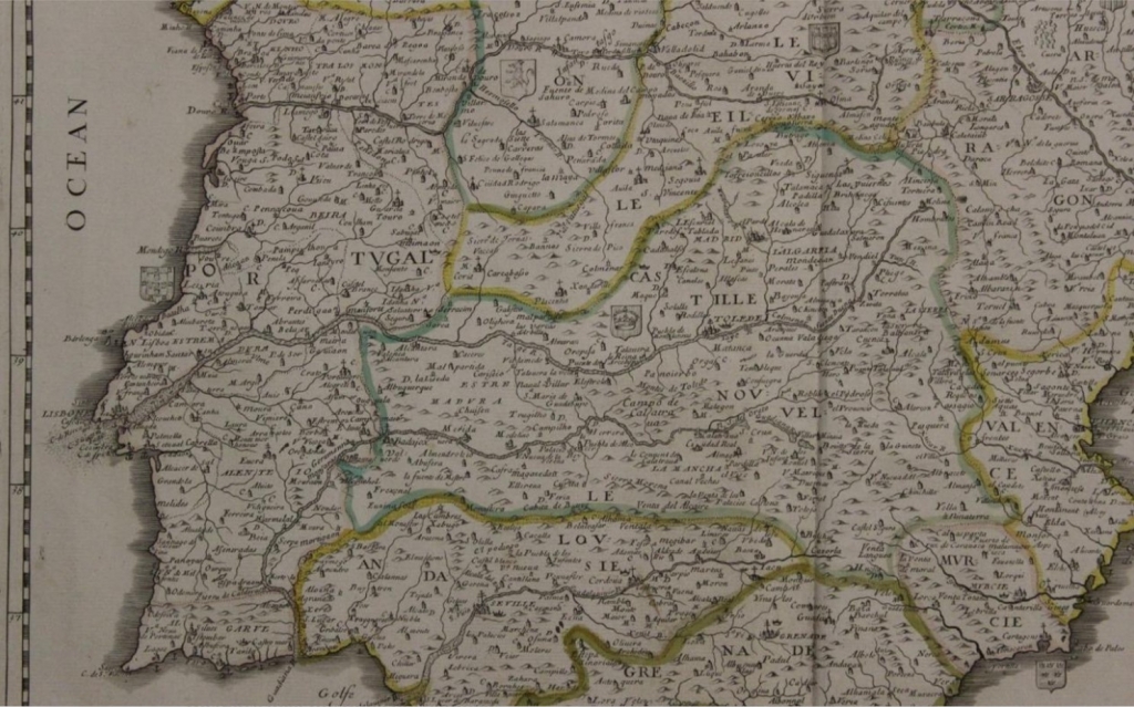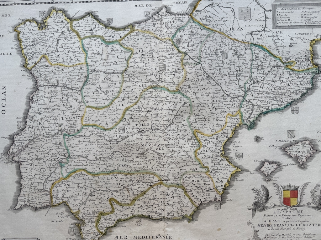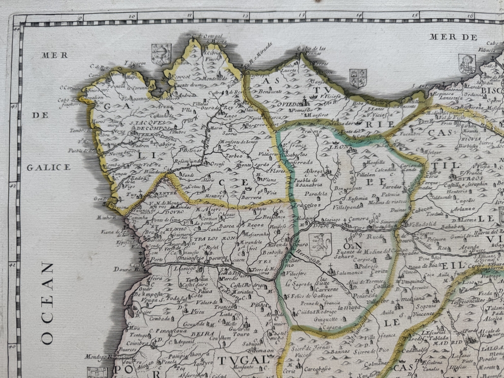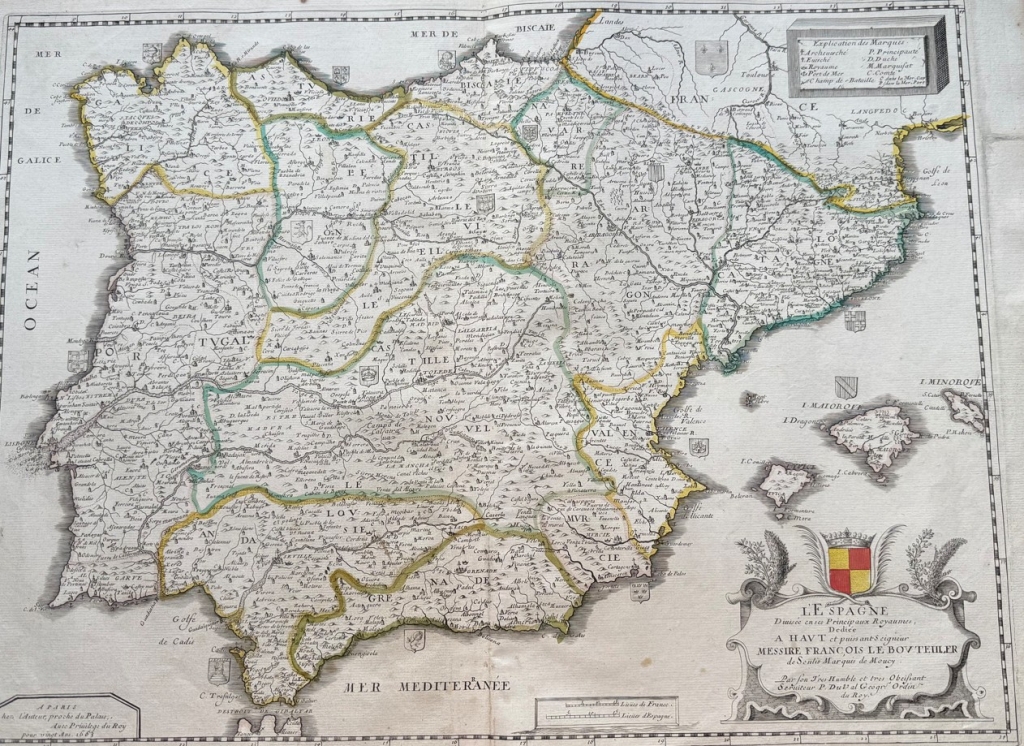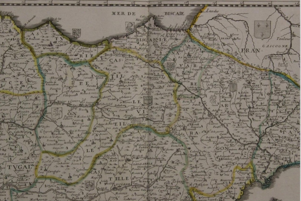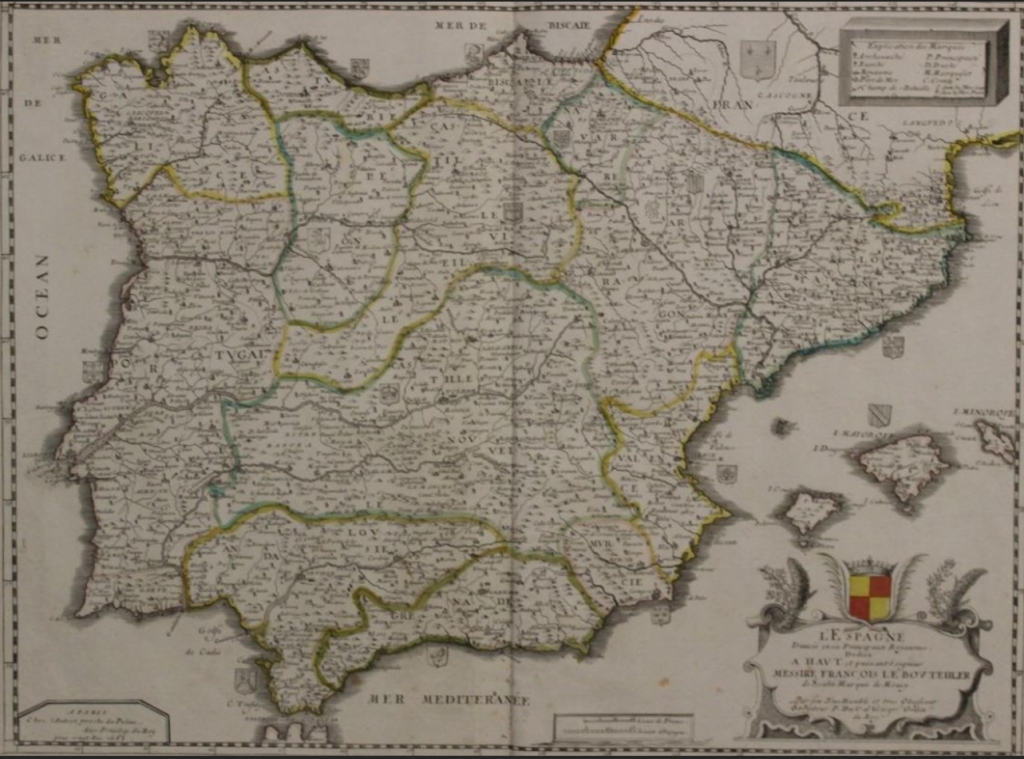 Gran mapa a color de España y Portugal, 1663. Pierre Du Val