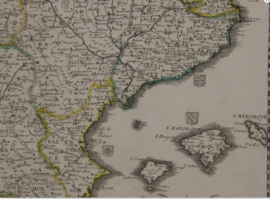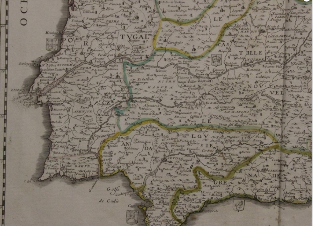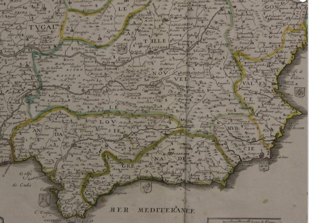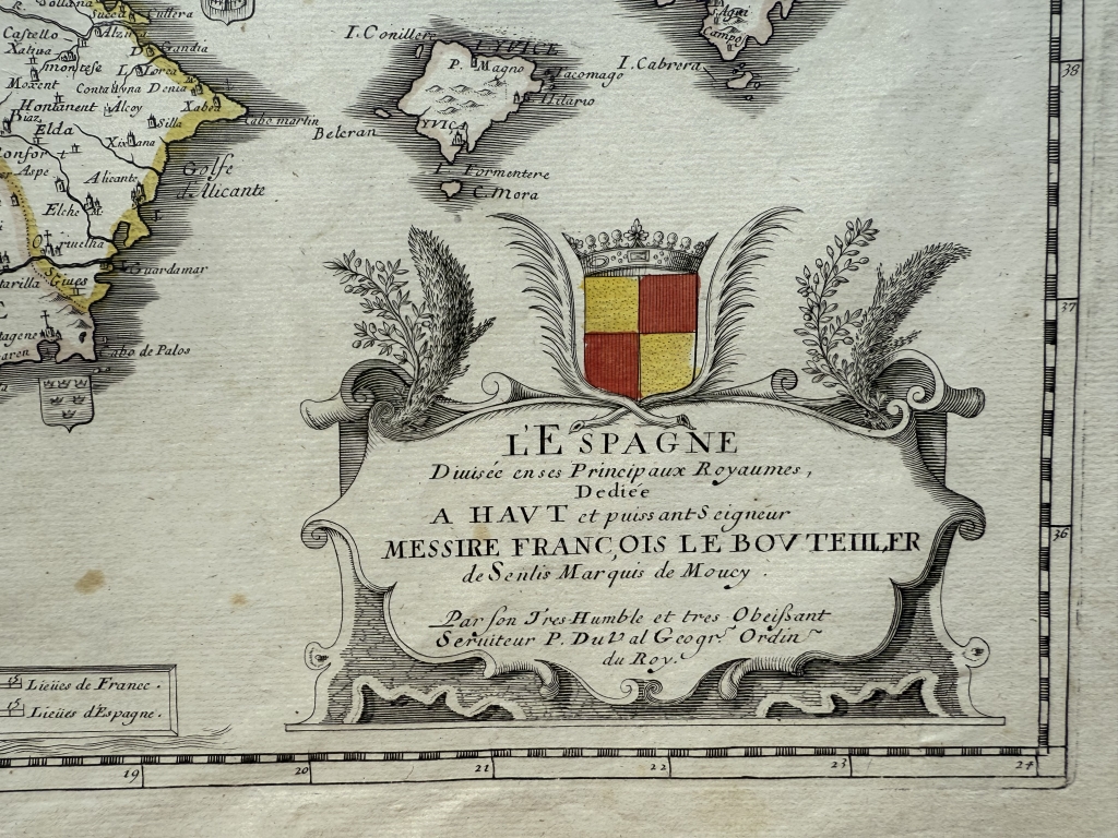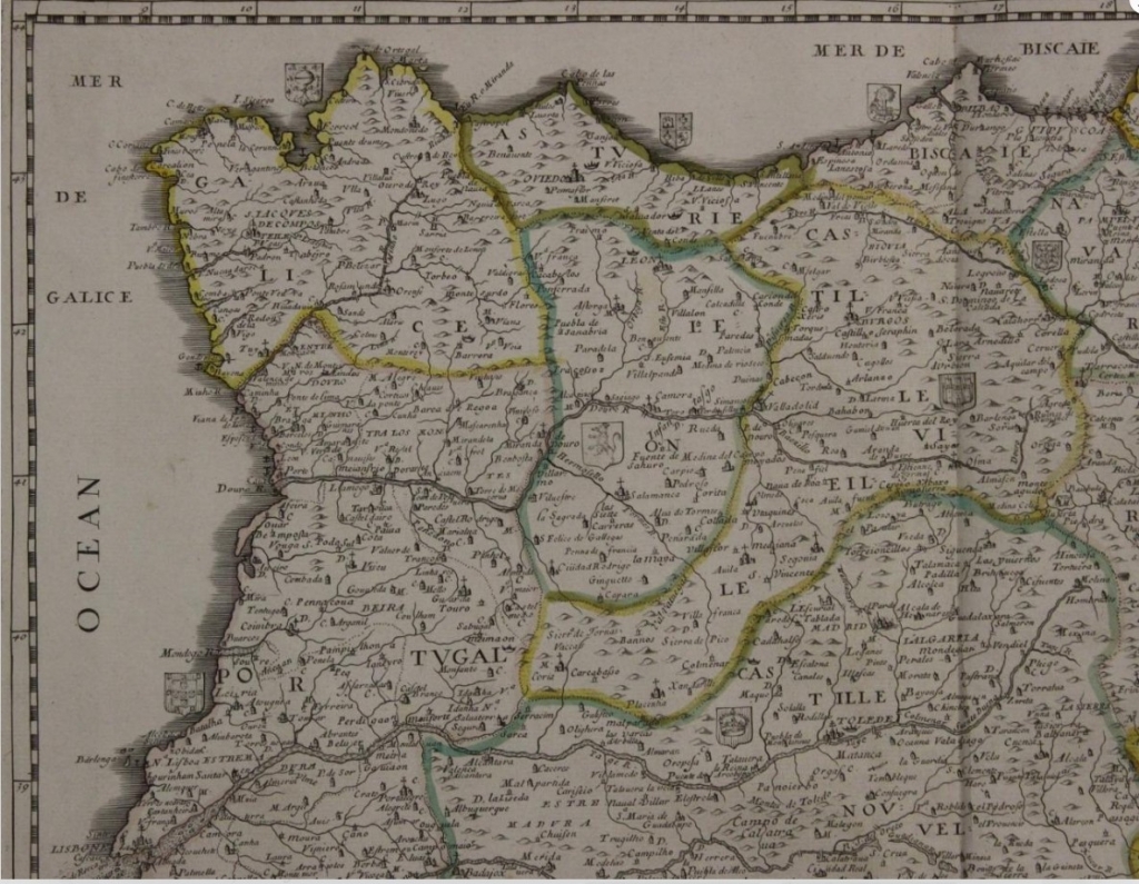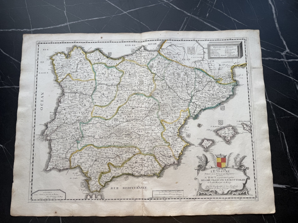 Gran mapa a color de España y Portugal, 1663. Pierre Du Val