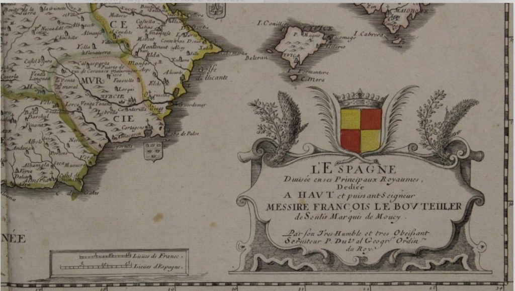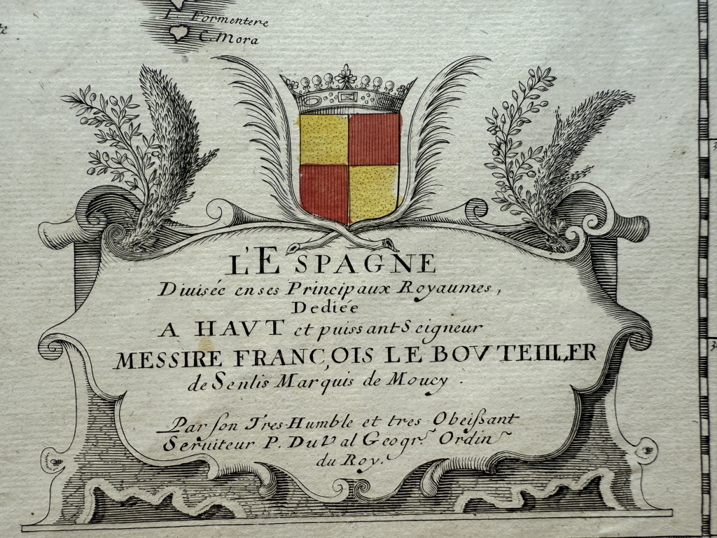 Título original: L'Espagne Divisée en sen Principaux Royaumes, Dediée a Haut et puissant Deigneur François le Bouteiller de Senlis Marquis de Moucy Par son Tres Humble et tres obeissant Serviteur P. du Val, Geogr? ¿Orden? du RoyA Paris Chez l'Autheur, proche du Palais, Avec Privilege du Roy pour vingt Ans. 1663.
