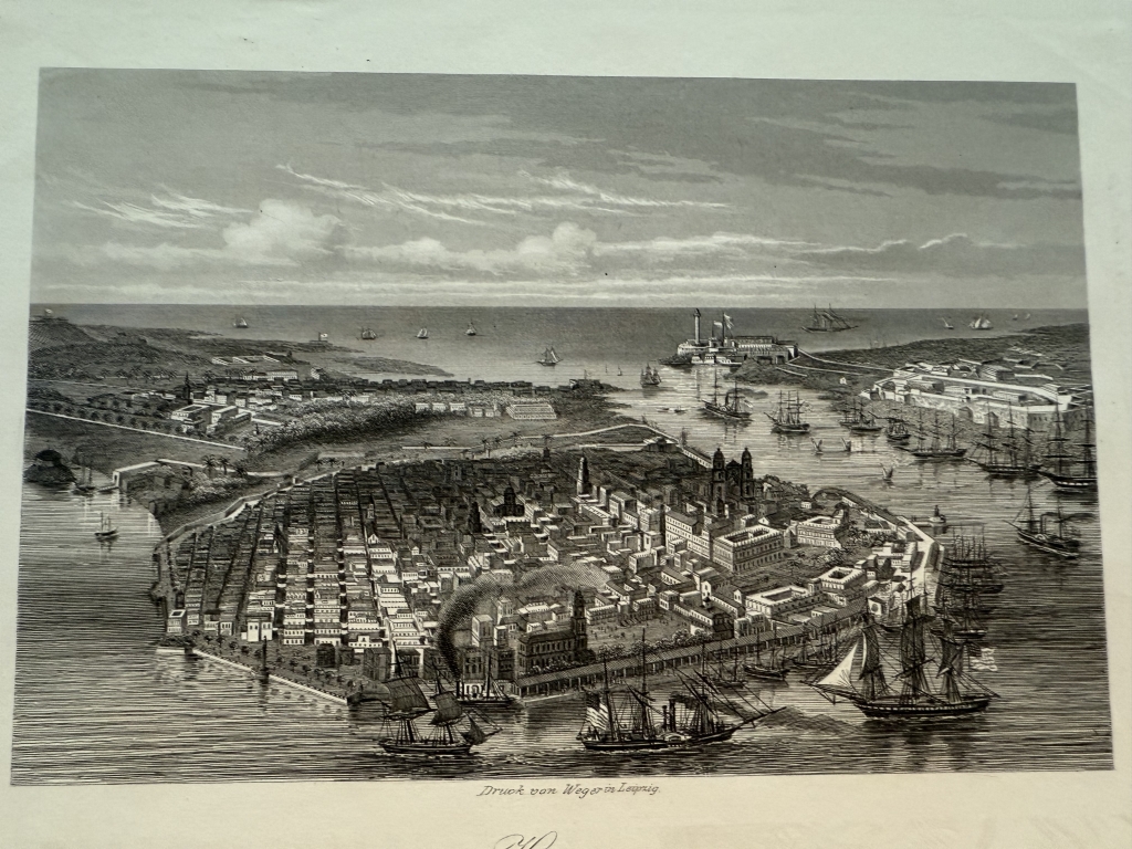 Grabado de placa de acero, extraído de una publicación alemana de la ciudad de Leipzig, cuyo autor es Weger, editadfa hacia 1850.