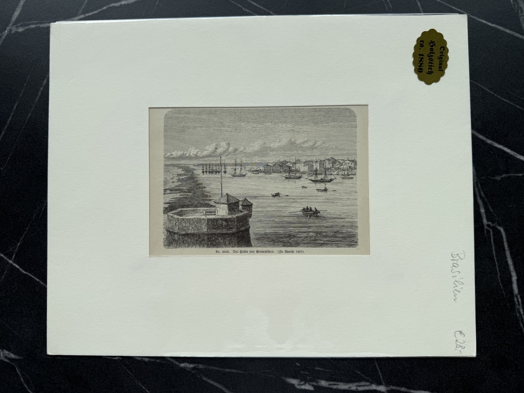 Xilografía o grabado de placa de madera, extraído de una publicación alemana editada hacia 1880. El autor se puede leer en la parte inferior, hacia el centro.