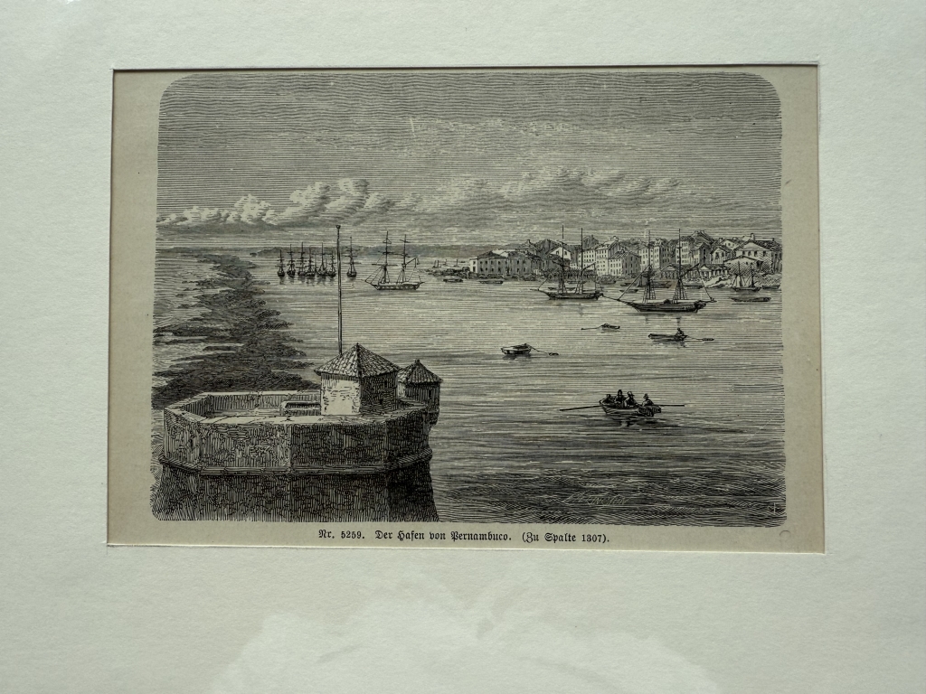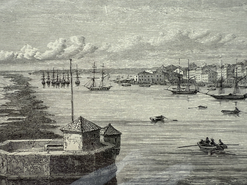 Vista desde el mar de la ciudad de Recife, en Pernambuco (Brasil), hacia 1880.