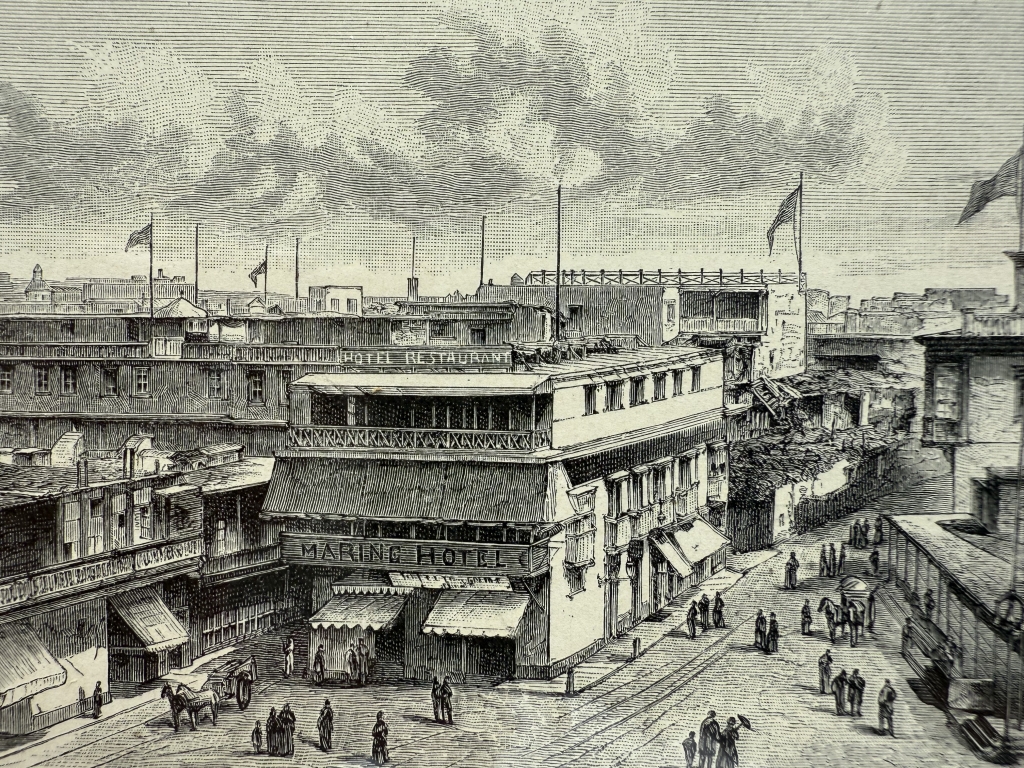 Edificios del puerto de El Callao, en LIma (Perú, América del sur), hacia 1880. Anónimo