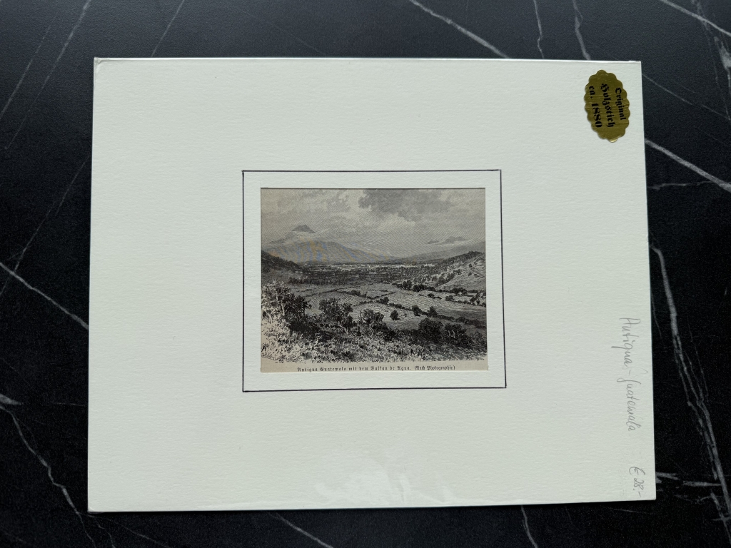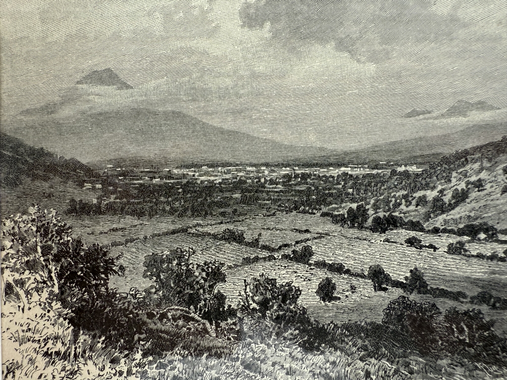 Vista del volcán de Agua, cerca de Antigua (Guatemala, América del sur), hacia 1880.