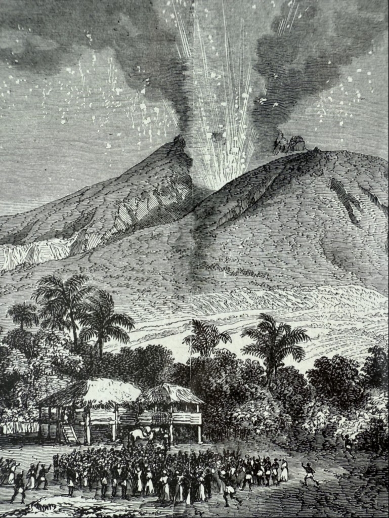 Erupción del volcán Monte Pelée (Martinica, Caribe, América), hacia 1880. Anónimo