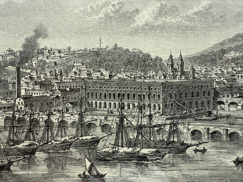 Vista de la antigua aduana del puerto de Río de Janeiro (Brasil), hacia 1880. Anónimo