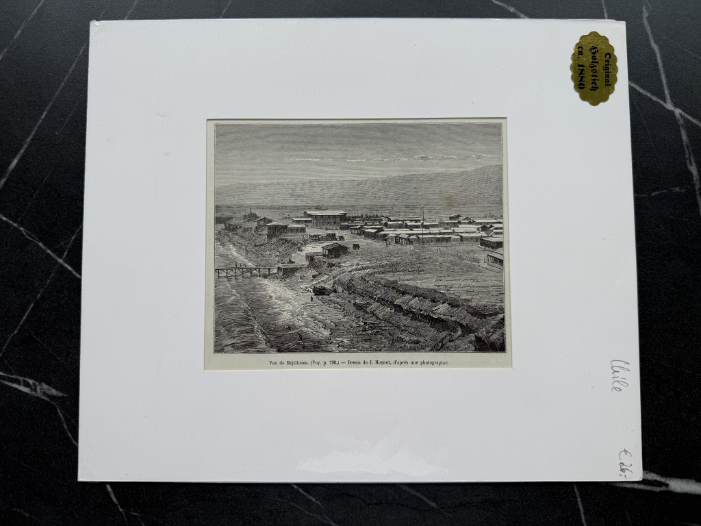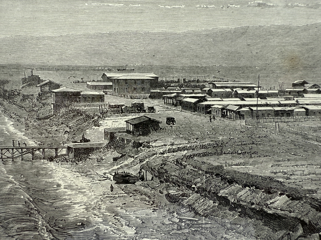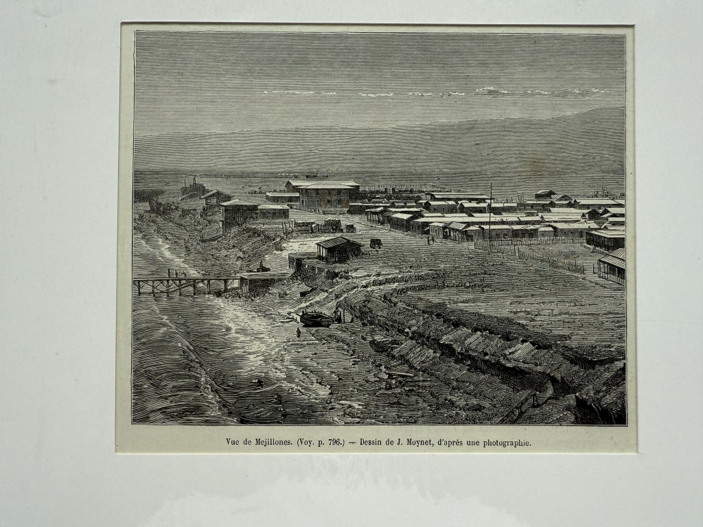 Vista del puerto de Mejillones, norte de Chile (América del sur), hacia 1880. Moynet