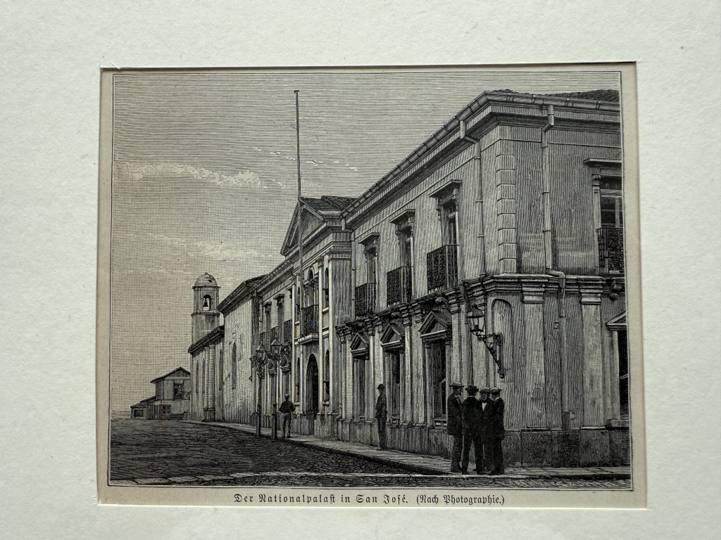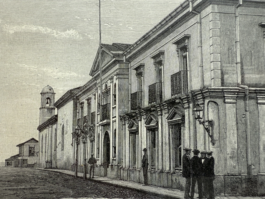 Vista del palacio nacional de san José de Costa Rica (América central), hacia 1880. Anónimo