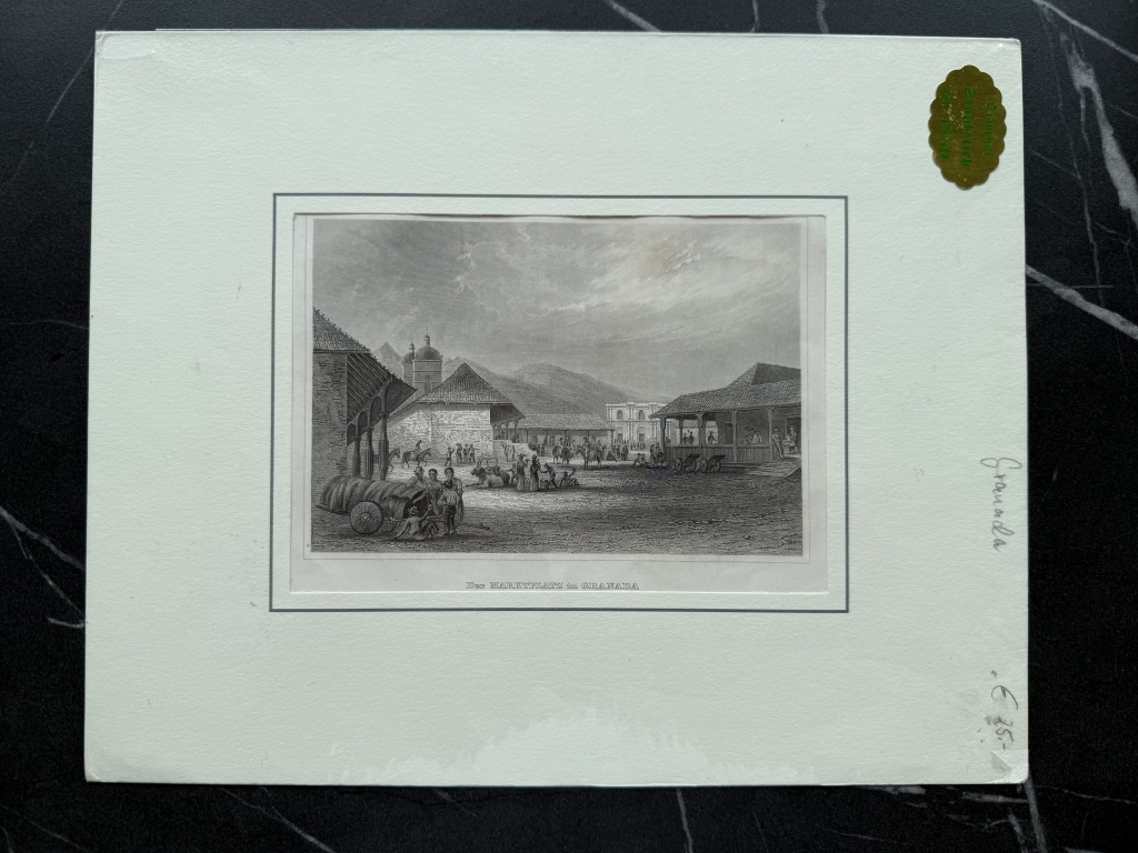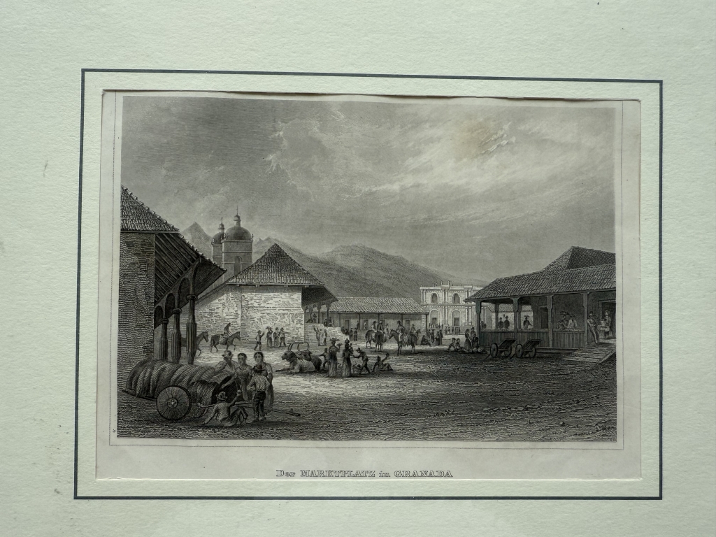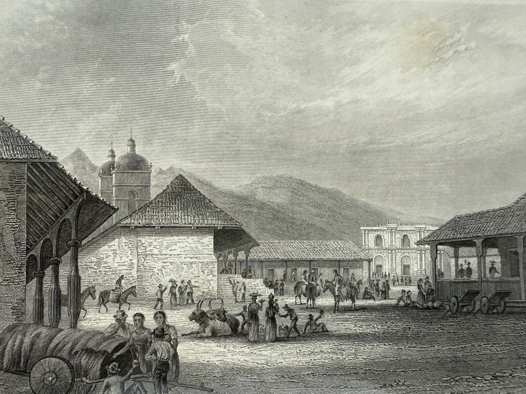 Plaza del mercado en Granada (Nicaragua, América central), hacia 1850. Biblio. Instit. Hildeb.