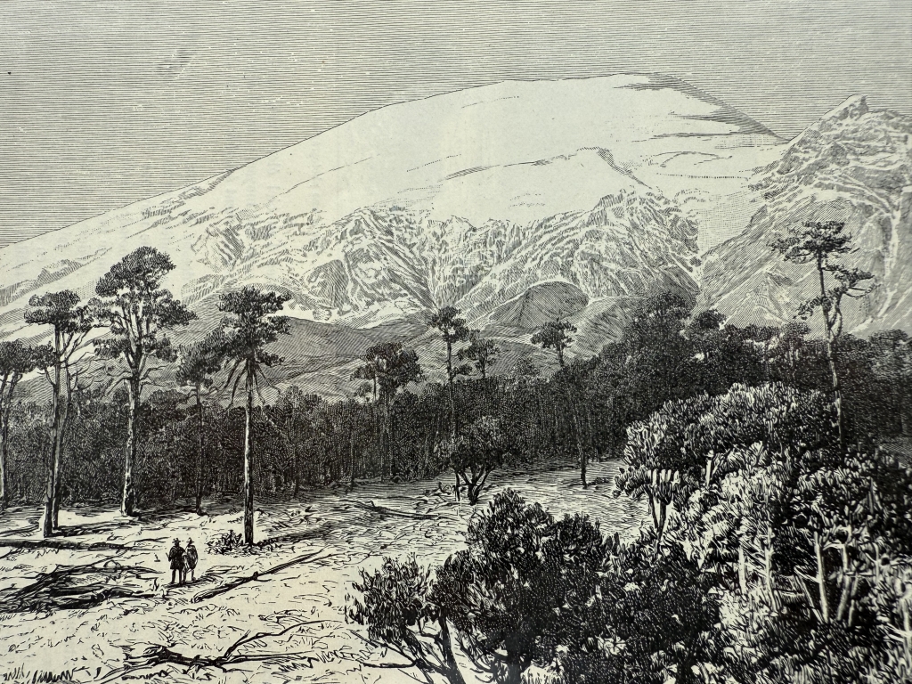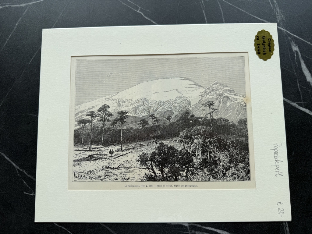 Vista del volcán Popocatépetl, en México (América del norte), hacia 1880. T. Taylor