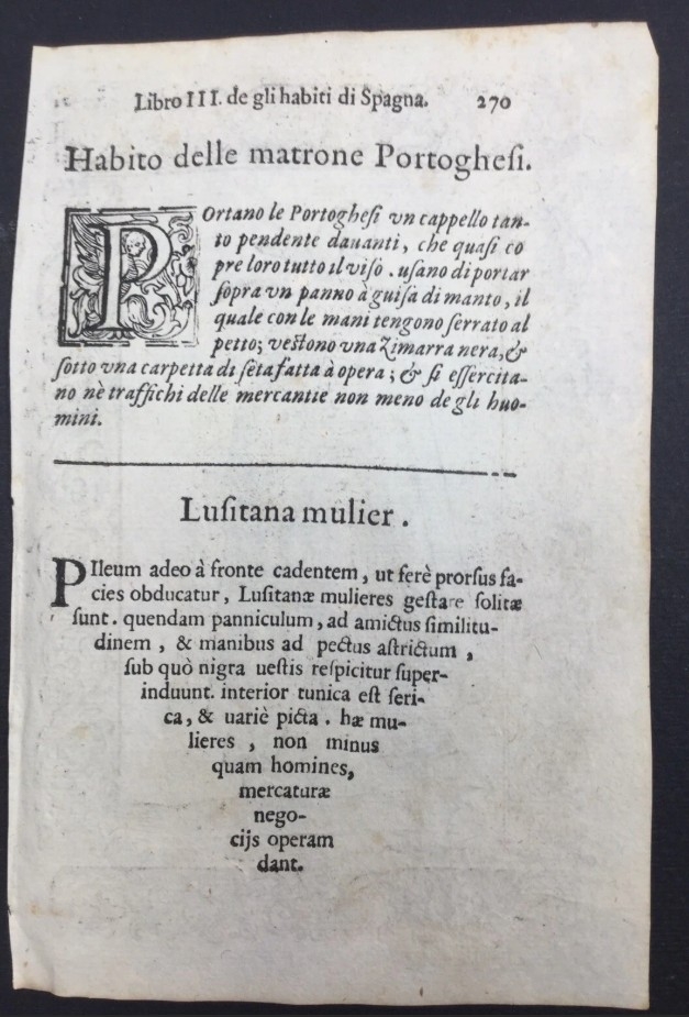 En el reverso posee un texto en latín, alusivo a otro grabado, con letra inicial decorada.