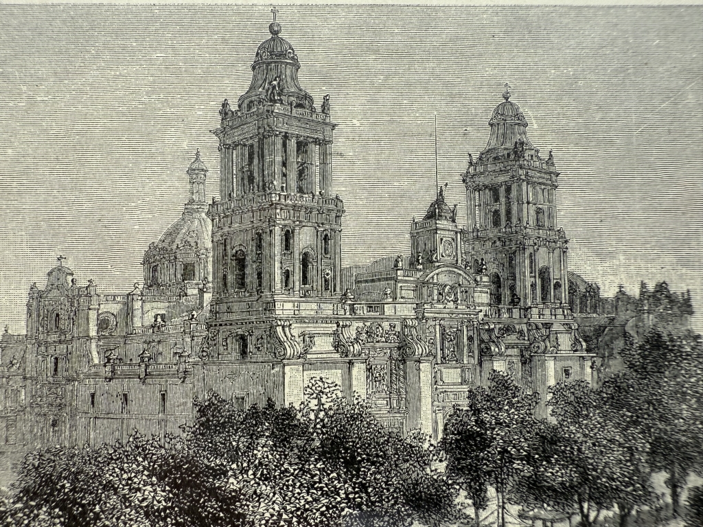 Fachada principal de la catedral de la ciudad de México (América del norte), hacia 1880